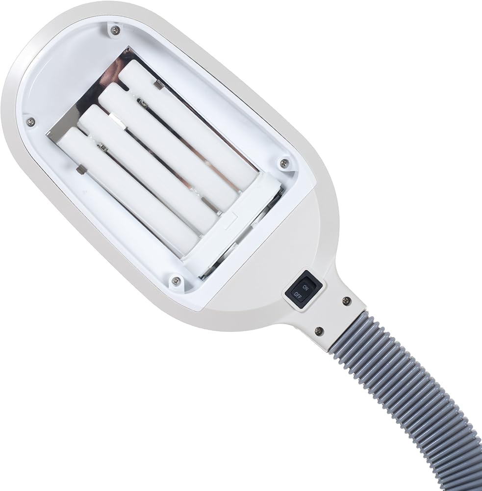 PRODUCT DETAILS - Materials: Plastic and Metal. Dimensions: Straight Neck: (L) 10.2” x (W) 8.7” x (H) 73.5”; Angled at 90-Degrees: (H) 61.2”; Cord Length: 64”. Voltage: 120V. Sun Lamp Comes with PL-27W Bulb. Color: Black.