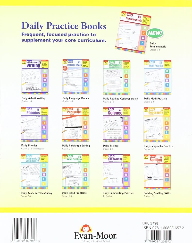 Give your eighth-graders the focused language arts practice they need to keep their language skills sharp. 36 weeks of practice cover standards-based skills such as:Vocabulary/Word Study- affixes- analogies- base/root words- figurative language- homophones- idioms- spellingPunctuation - end of sentence- apostrophes: contractions and possessives- commas: series, dates, addresses, direct address/interjections, compound sentences, after an introductory phrase/clause, and with nonrestrictive appositives- punctuation and capitalization: dialogue and friendly business letters- quotation marks: songs, poems, and short stories- unnecessary commas- run-on sentences- semicolons, dashes, and parenthesesCapitalization- beginning of a sentence- books, songs, and poems- proper nounsGrammar and Usage- active/passive voice- conjunctions- correct article, adjective, adverb- comparative/superlative- predicate adjectives and nouns- easily confused words- sentences: parts, types, structure, fragments, and combining- verbs: parts, tense, usage, and spelling- nouns: possessive, singular/plural, and concrete/abstract - pronouns: subject/object, possessive, and antecedents- prepositional phrases/prepositions/objects of a preposition- double negativesOther Skills- dictionary guide words- syllabication- outlines