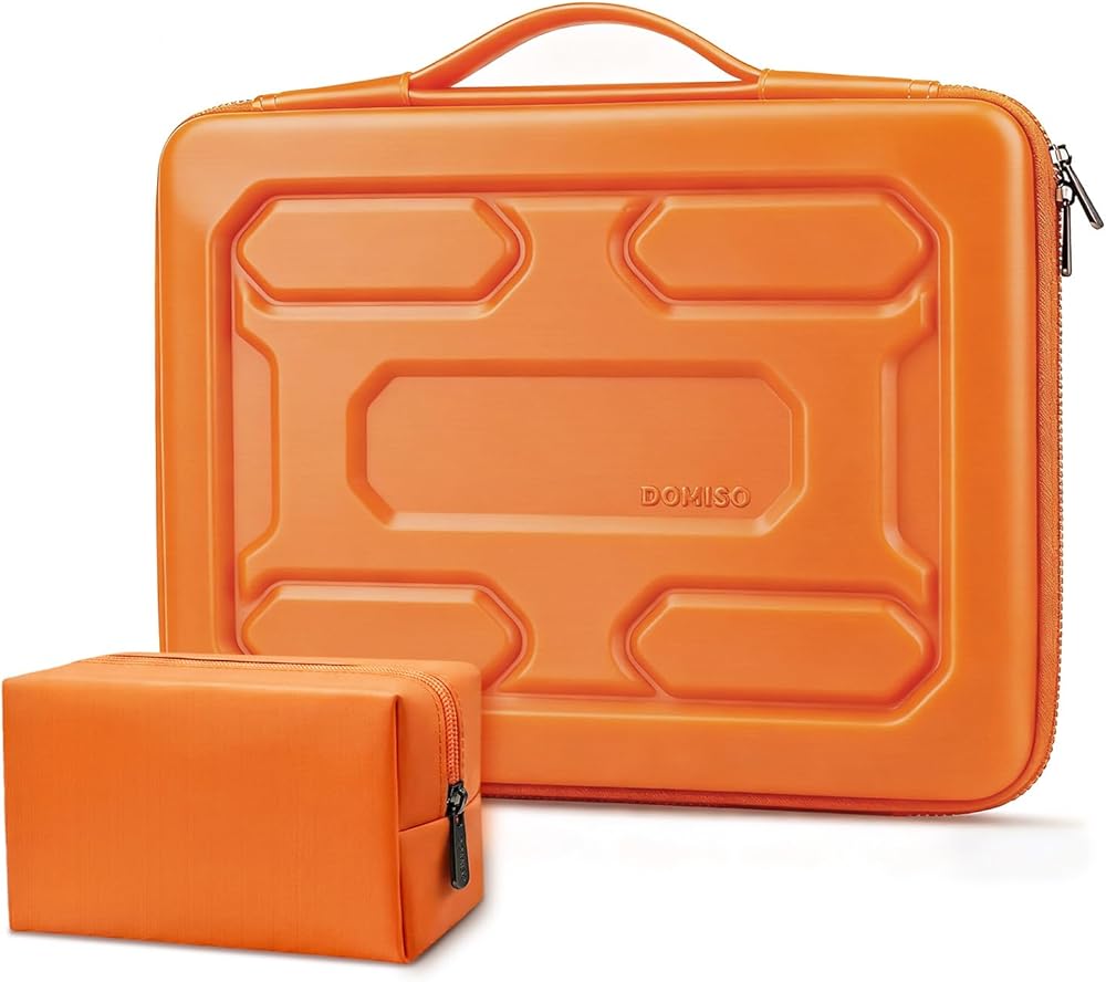 DOMISO Laptop Hard Case 14-14.4 inch Waterproof Shockproof Hard Shell Laptop Sleeve with Handle & Storage Pocket, Compatible with MacBook, HP, Dell, Orange