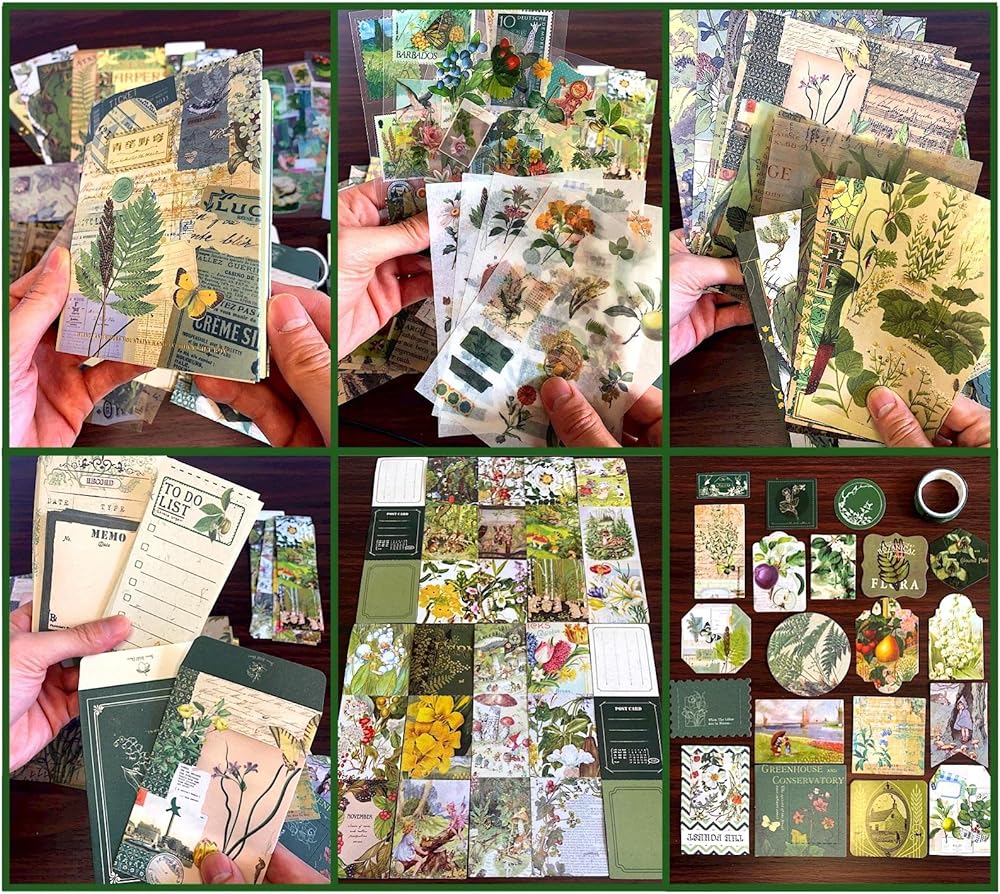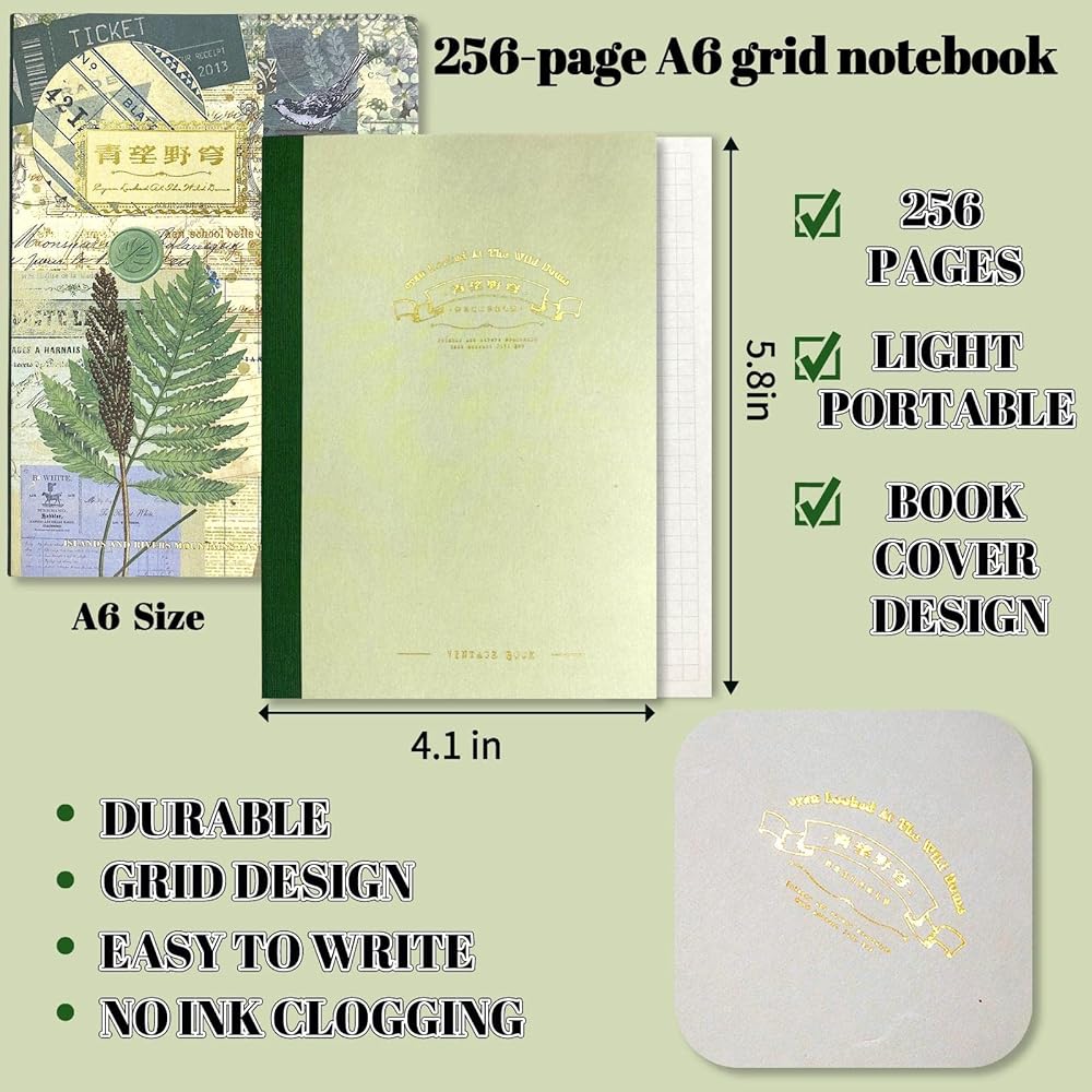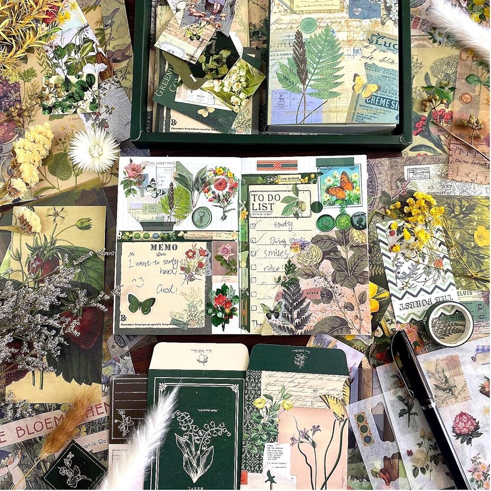 LCLAIDYDY Scrapbooking Supplies Kit,Vintage Botanical Aesthetic Scrapbook Kit,Bullet Junk Journal Kit with Journaling,A6 Grid Notebook,Stationery,Flower DIY Craft Gift for Teen Girl Women