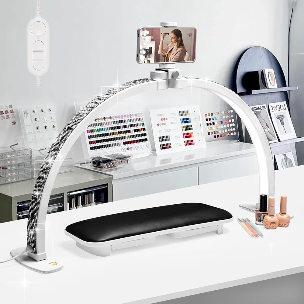 2024 Upgraded half moon light: The upgraded 29 inch half moon light for nail desk features a unique curved design, ensuring more ample workspace. The light sources from the top and sides provide even illumination, reducing shadow areas and making the nail art process more precise and efficient
