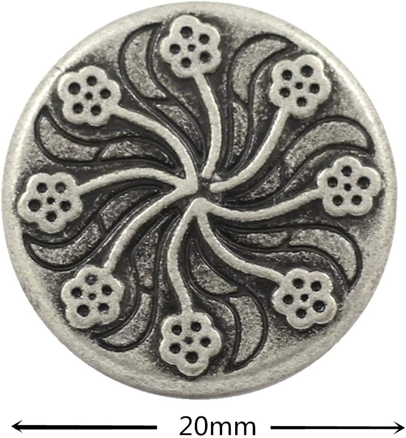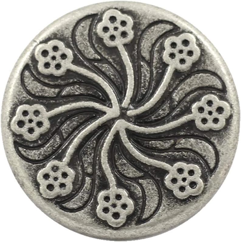 Bezelry 12 Pieces Flower Flourish Antique Silver Color Metal Shank Buttons. 20mm (3/4 inch) (Antique Silver)