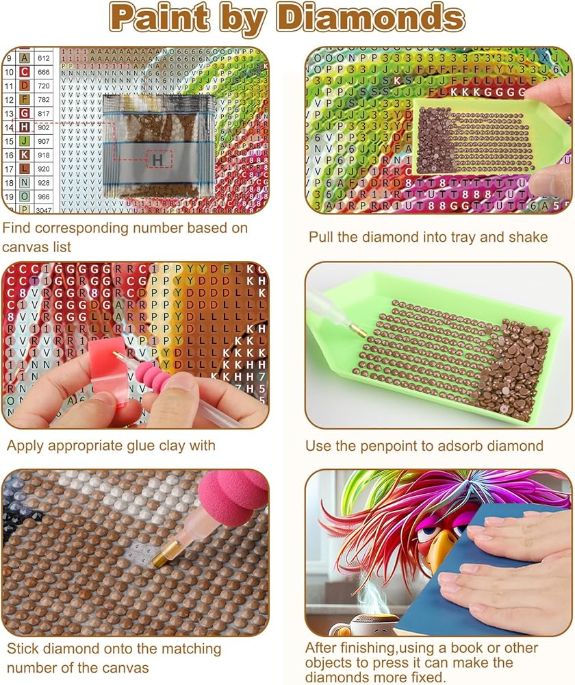【Easy to Operate】The letter symbols on canvas are clear and easy to read. It's easy for diamonds to stick and maintain pattern, wouldn't fall off. You can easily complete the painting according to the steps. The diamond's color is fade-resistant, ensuring a long-lasting and vibrant finished result.
