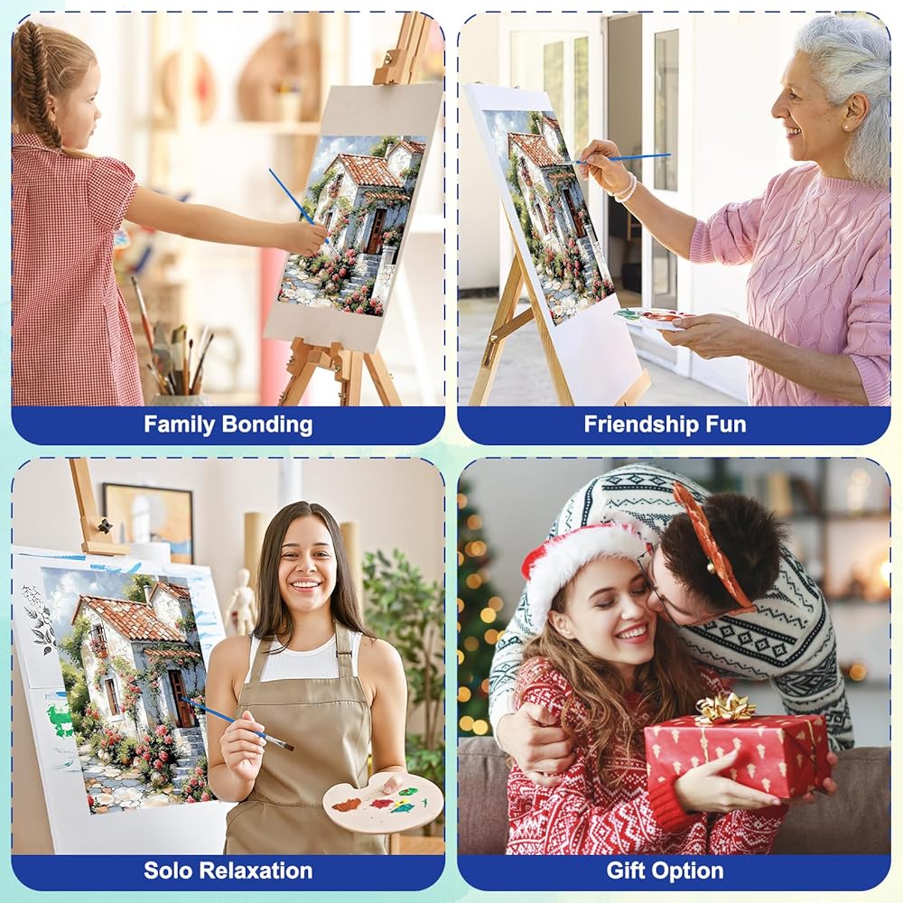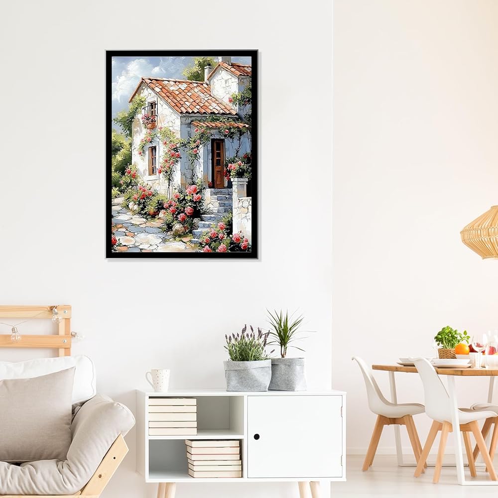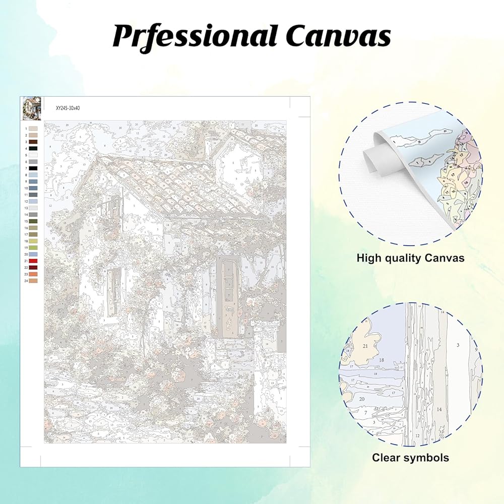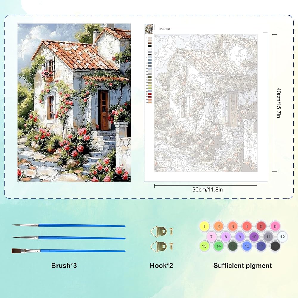 EOBROMD Paint by Numbers for Adults, DIY Flower House Paint by Number Kits for Beginner on Canvas, Landscape Paint by Numbers Adult Kit Drawing Arts and Crafts for Gift Home Wall Decor 12x16inch