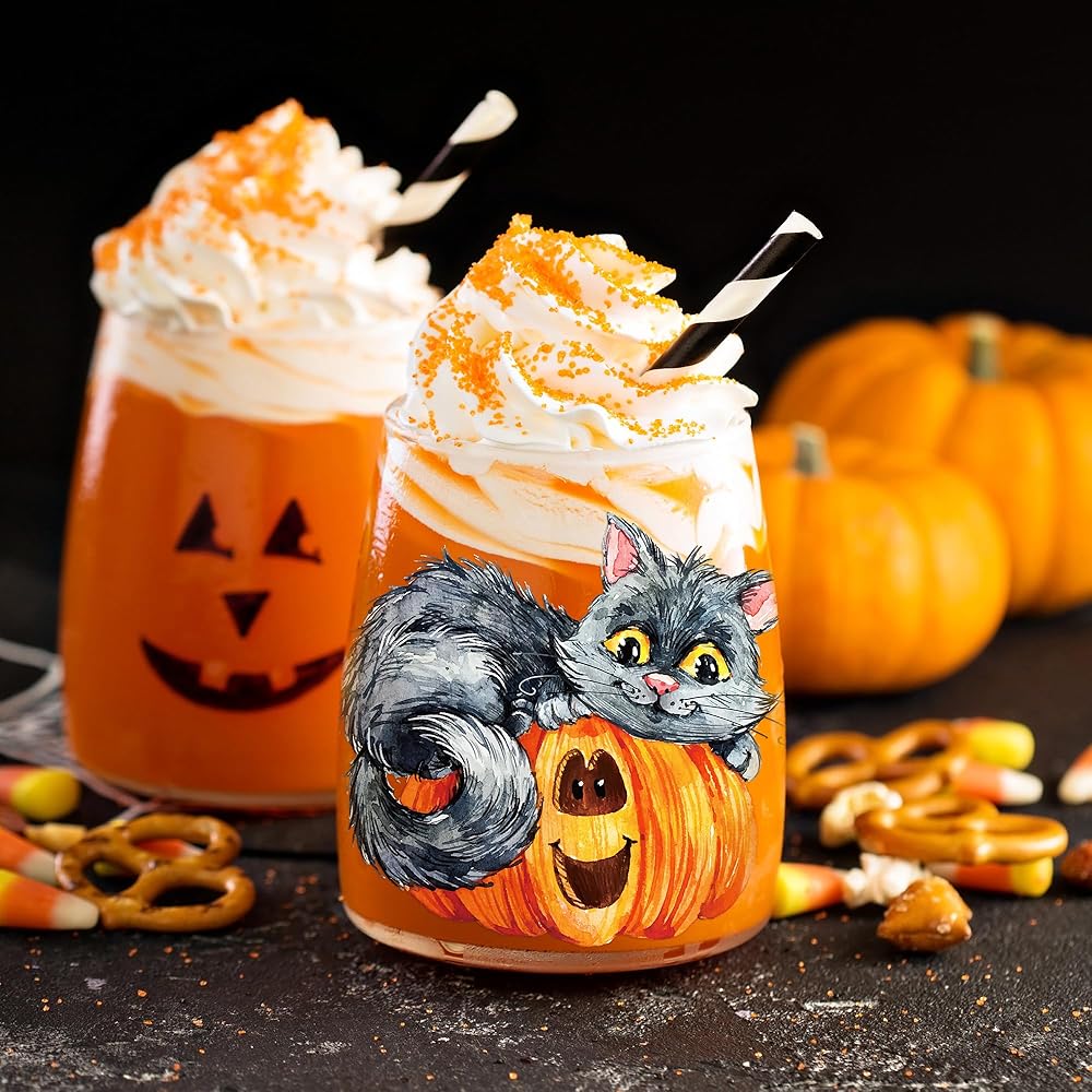 AFRITEE Transfer Cup Wraps Stickers - 20 Sheets Halloween Uvdtf Cup Wraps for 16 Glass Coffee Cups, Crow Scarecrow Pumpkin Skull Rub on Transfer Stickers Decal for Furniture Halloween Decoration