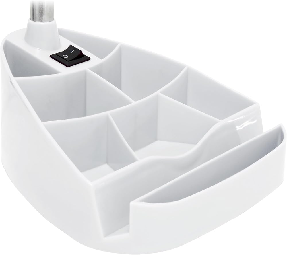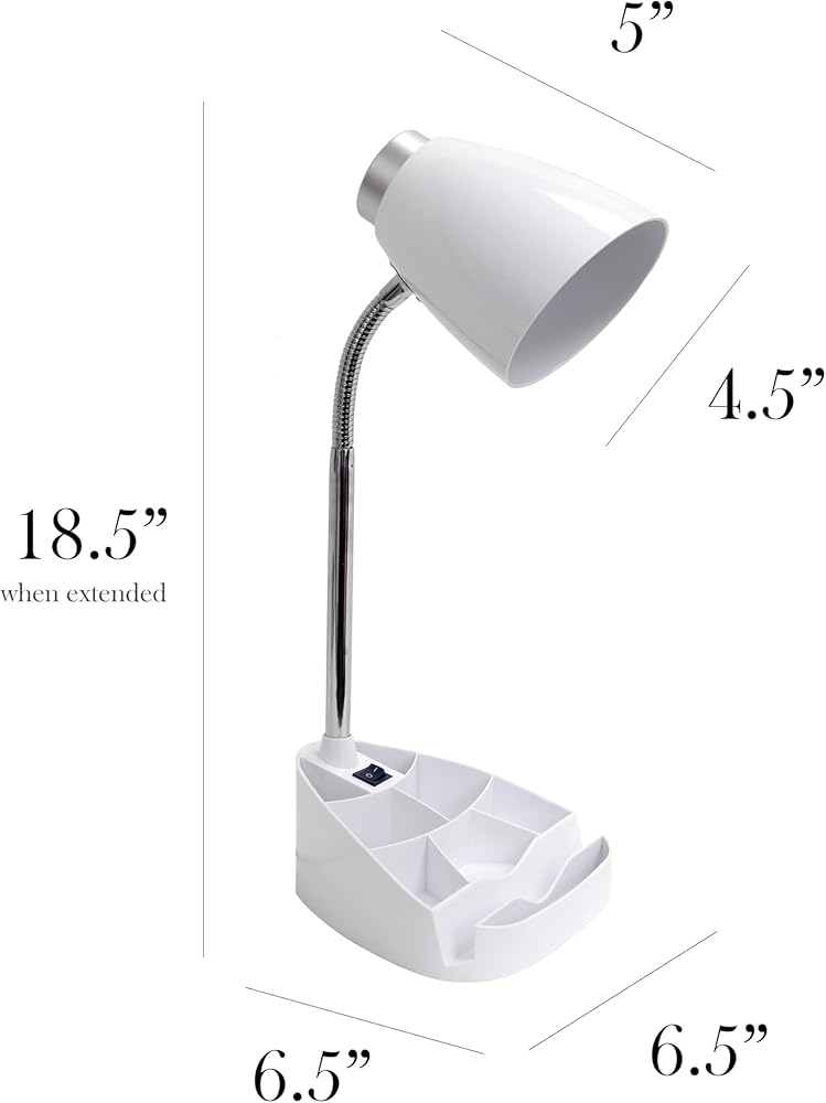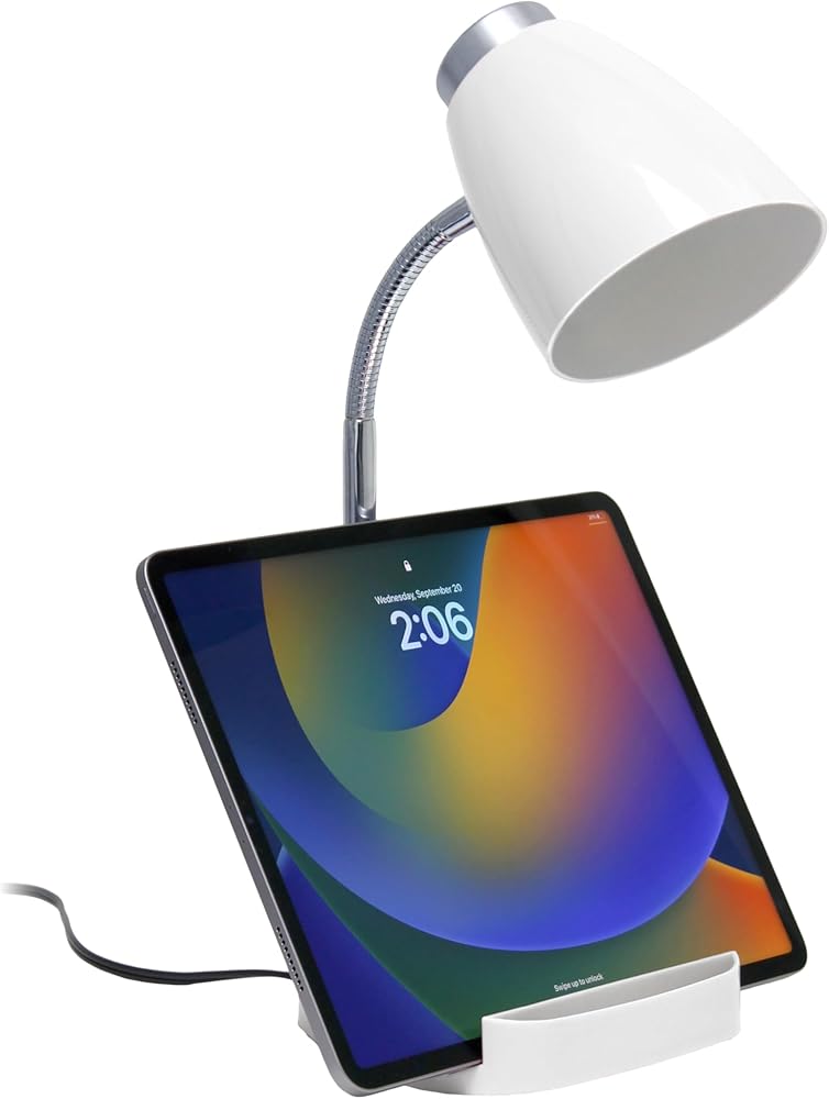 Simple Designs LD1067-WHT Compartmental Desk Lamp with iPhone/iPad/Tablet Stand, Bendable Gooseneck, for Office, Living Room, Nightstand, Library, Entryway, White