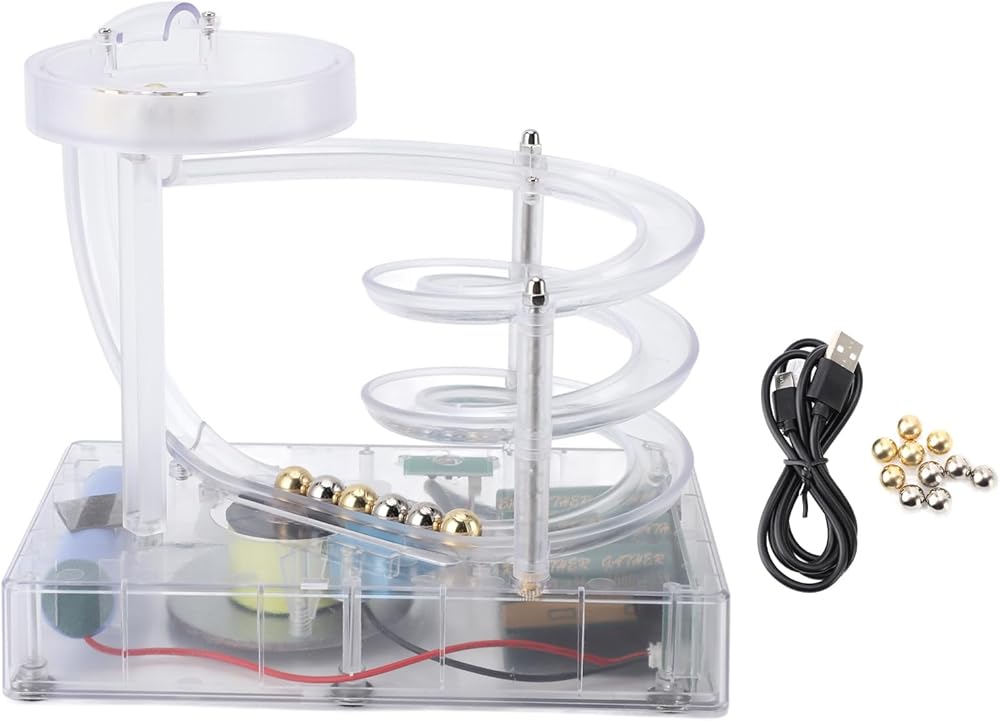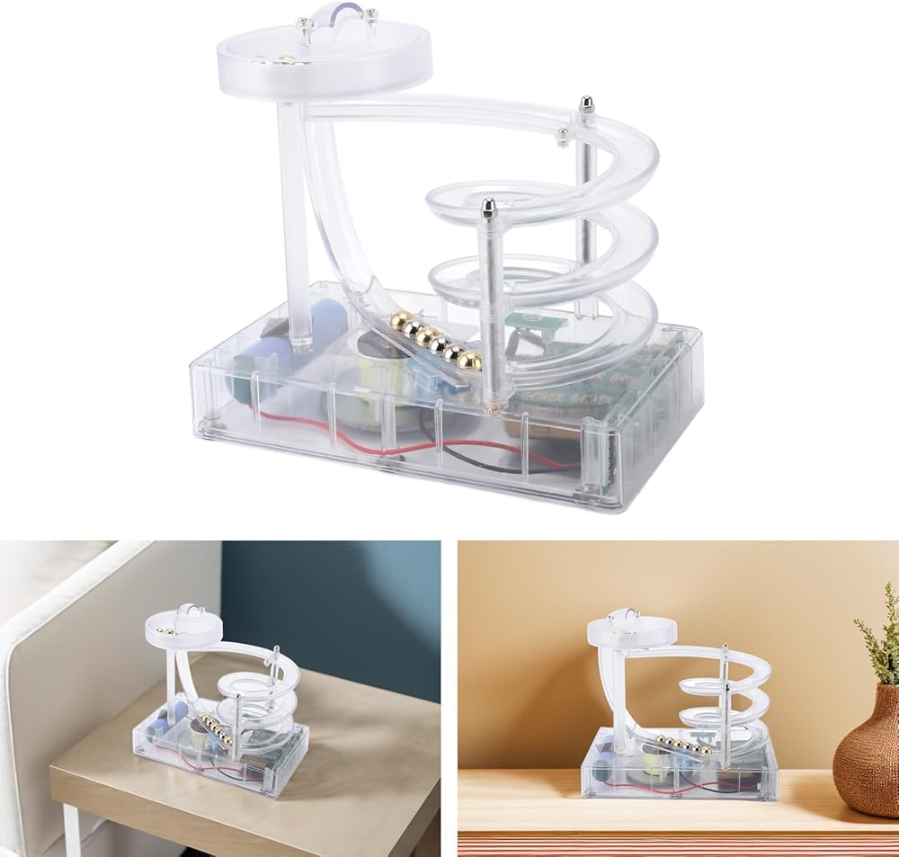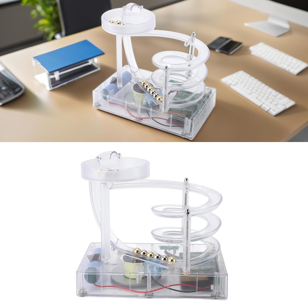 Kinetic Art Perpetual Motion Machine, Science Physics Gadgets Desktop Decoration, Perpetual Motion Simulator for Home Office, Non Stop Rolling Ball Toys (Clear)