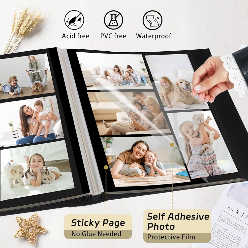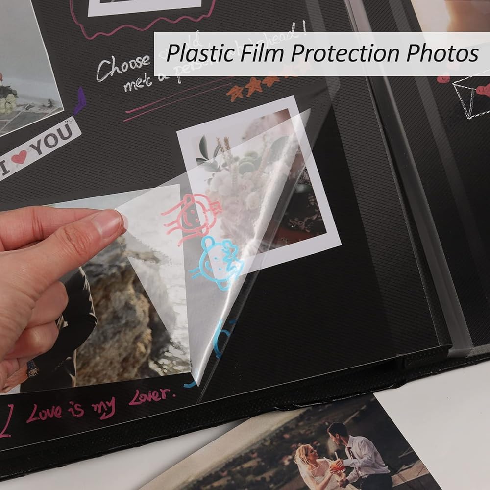 Keep Photo: Quality transparent plastic cover is self-adhesive on the page, Bi-Directional pages hold photos DIY Photos of Any Size on the same page,and photos can be saved safely