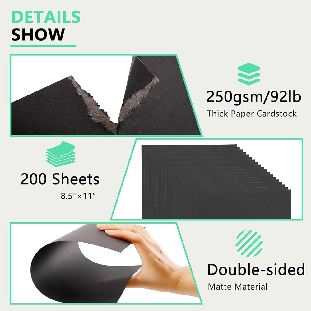 200 Sheets Cardstock,8.5 x 11 Inches Kraft Cardstock,Thick Paper Card Stock 92lb/250gsm,Printer Paper for Invitations Menus Crafts DIY Cards Projects(Black)