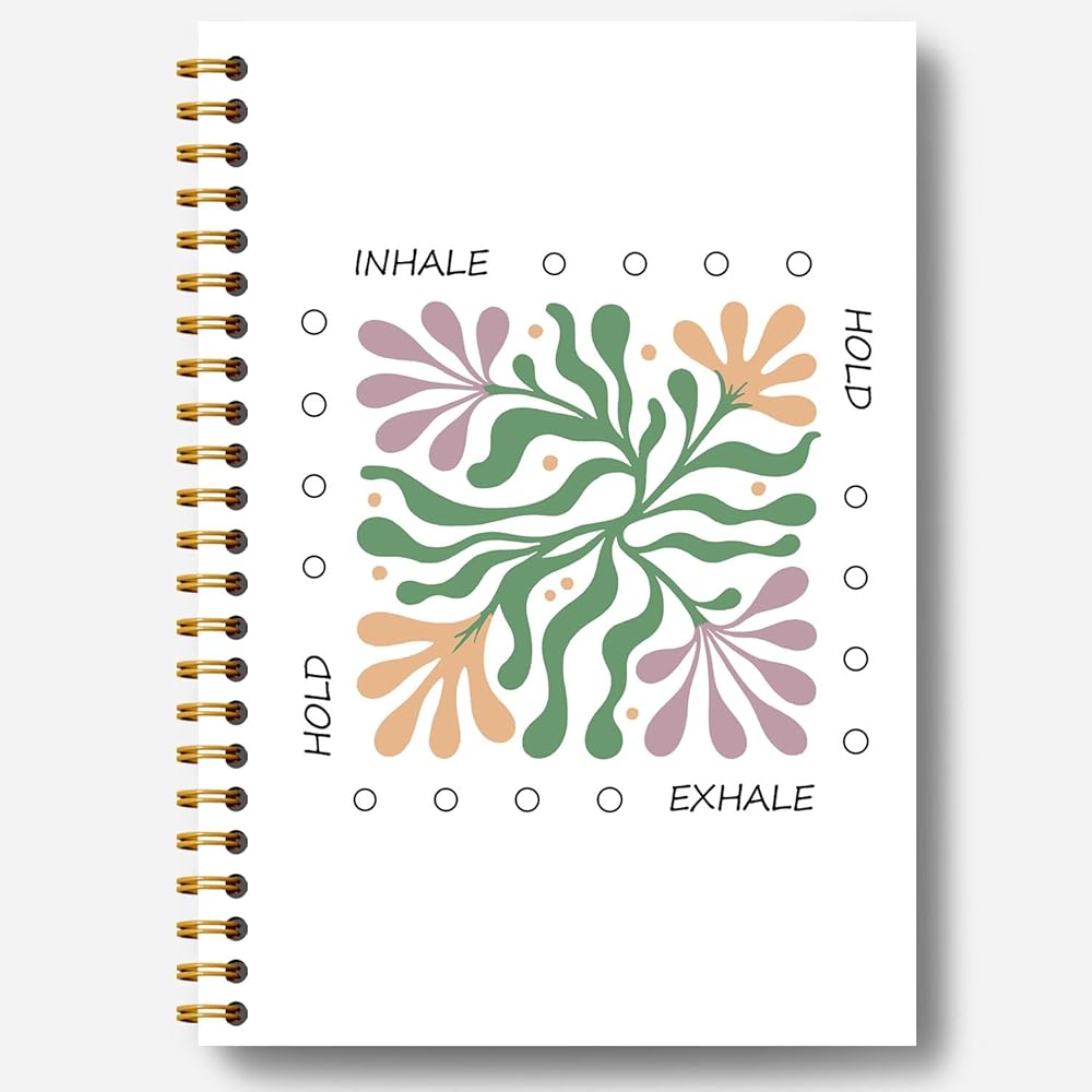Abstract Boho Floral Mental Health Notebook, Motivational Positive Affirmation Journal, Therapy Counselor Office Must Haves, Inhale Exhale Hardcover Spiral Notebooks 5.5x8.3 Inch