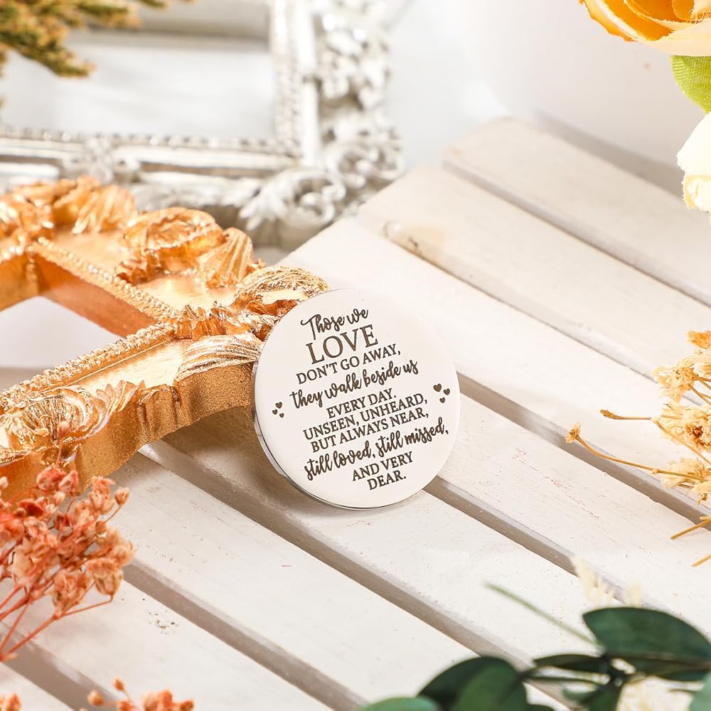 Token of Comfort: experience the warmth and comfort of a hug even in the absence of a loved one with our pocket hug coin; Crafted from durable stainless steel and showcasing an elegant silver hue, this 1.18 x 1.18 inch charm properly fits into a pocket, always keeping their memory close; The double side lettering pocket hug is a touching bereavement gift that brings a sense of strength and remembrance during tough times