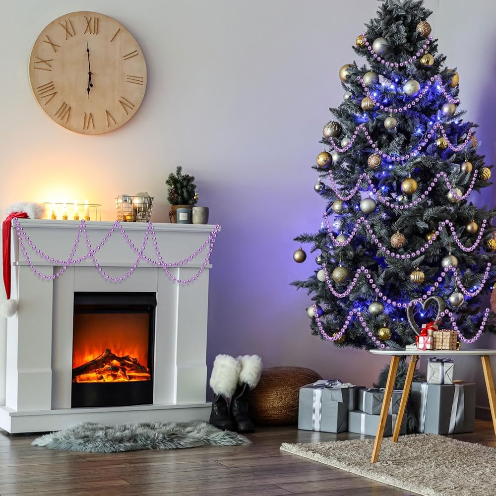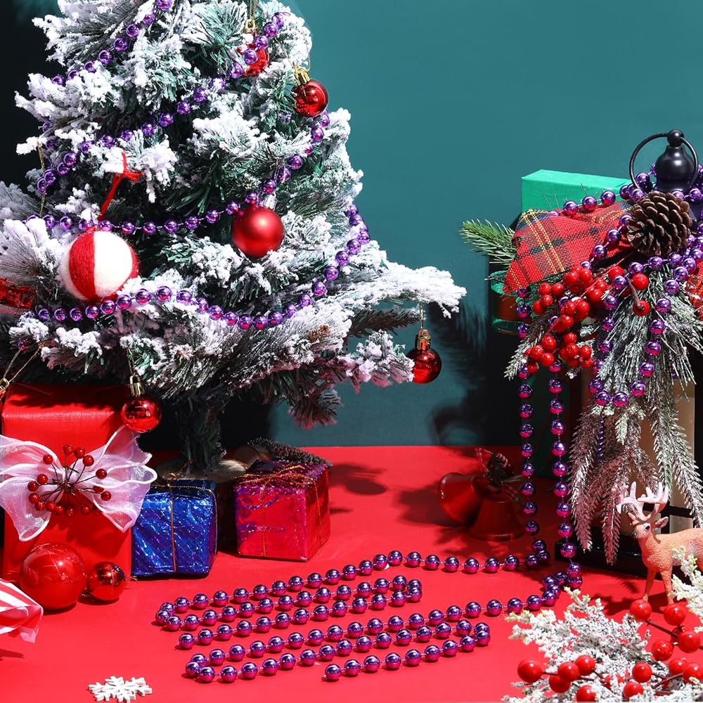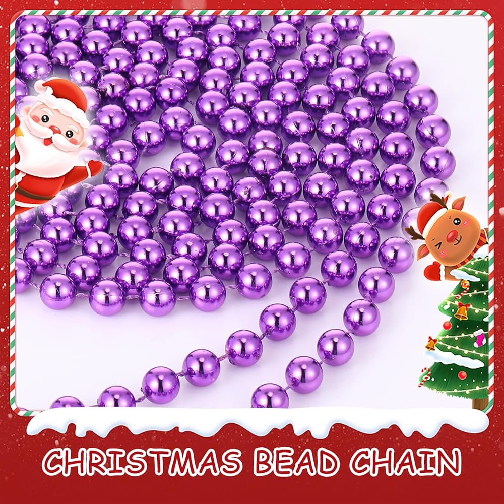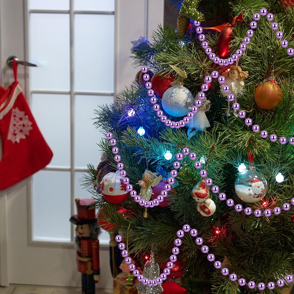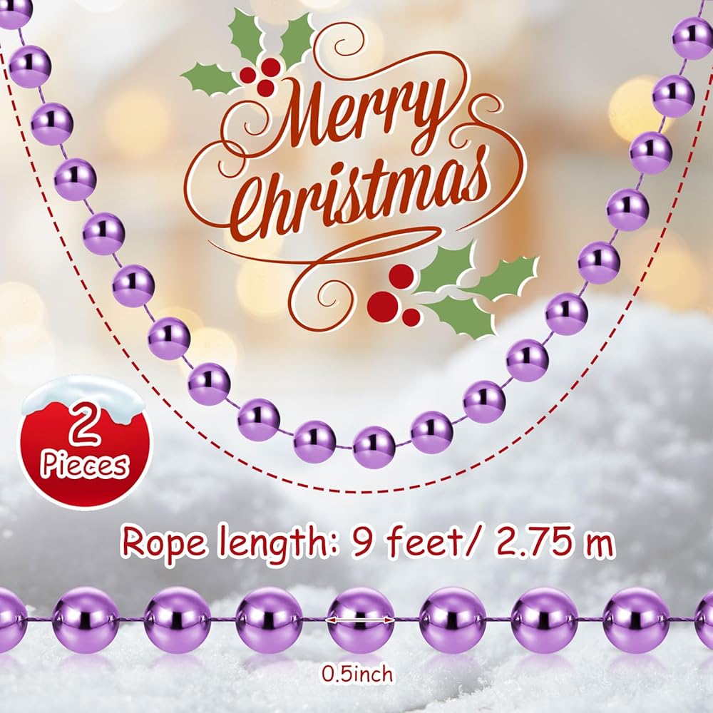 2 Pcs 18ft Christmas Bead Chain 1/2" in Diameter Tree Bead Craft String Pearls for Curtains, Wedding Party Decorations, DIY Christmas Tree Ornaments(Purple)