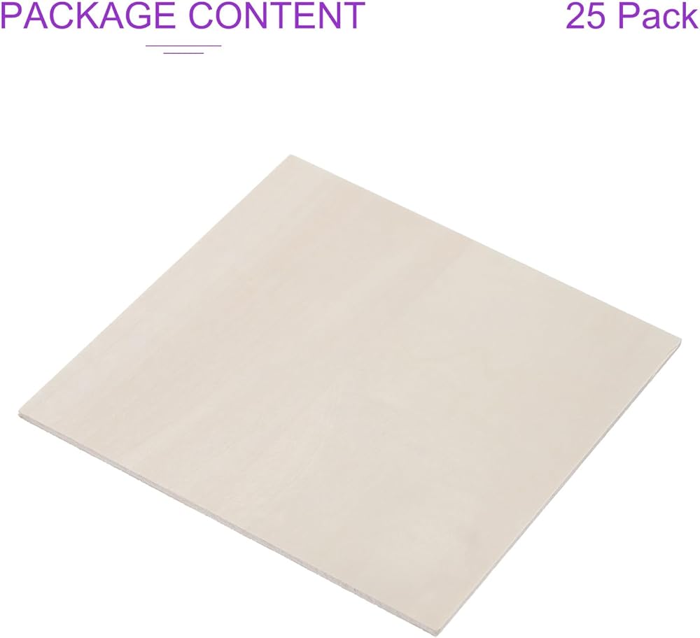 DMiotech 25 Pack 4 x 4 x 1/13 Inches 2mm Thick Wood Sheets Basswood Sheets Unfinished Plywood Squares Plywood for DIY Craft Laser Wood Burning Drawing