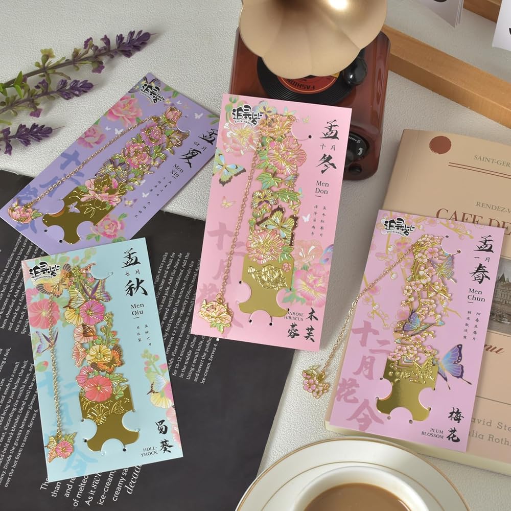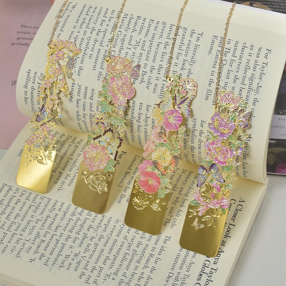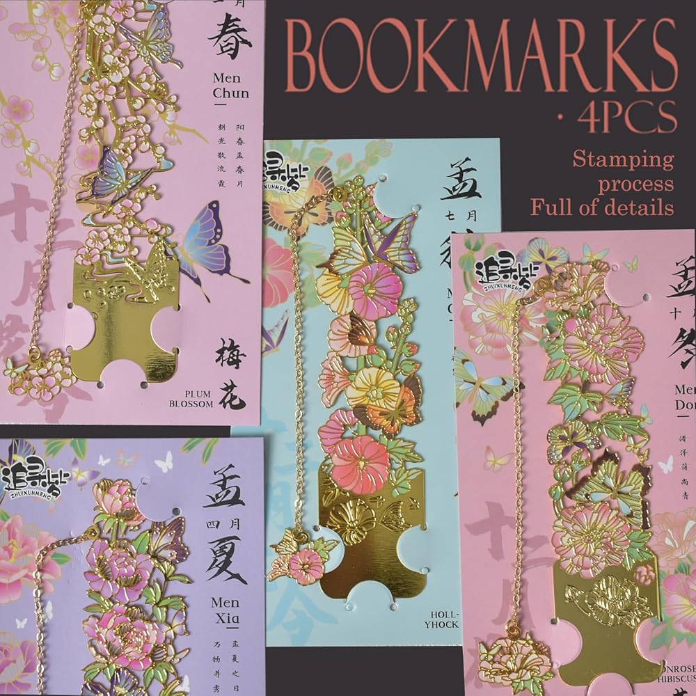Package included: metal bookmarks 4pcs, the size of one is 1.2*4.5 inches, each different style, light weight, can be carried around