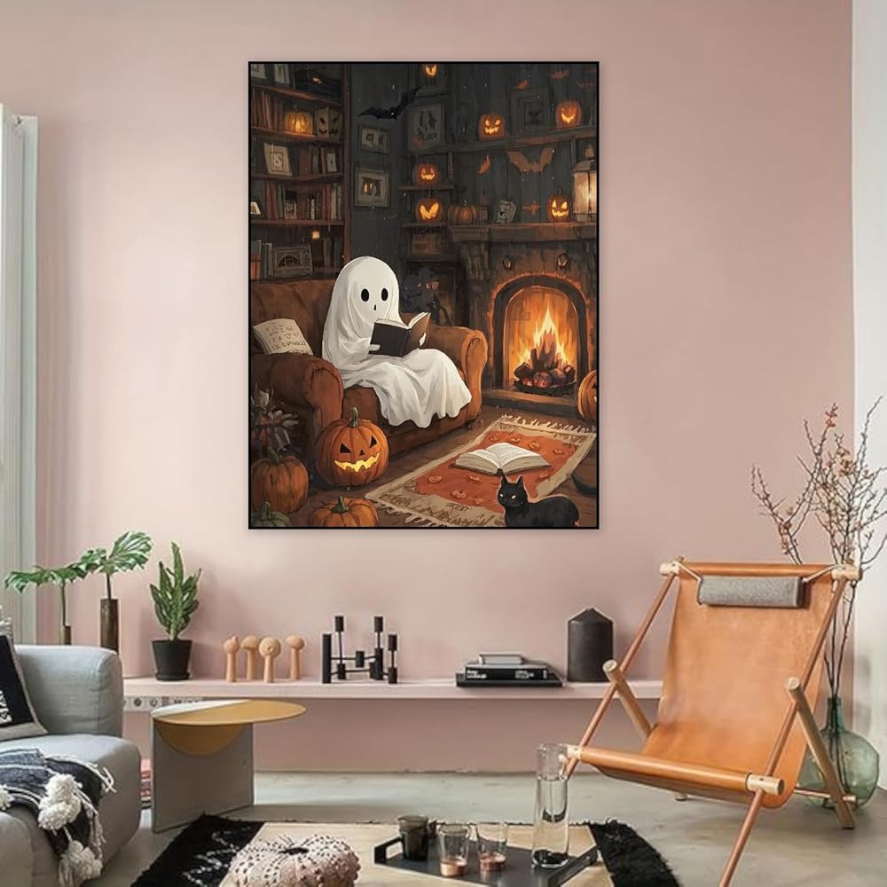 CEUHROG Halloween Diamond Art Painting Kits for Adults,5D Ghost Diamond Dots Paintings for Beginners,DIY Full Drill Diamond Gem Art with Painting Kits for Home Wall Decor 12X16 inch