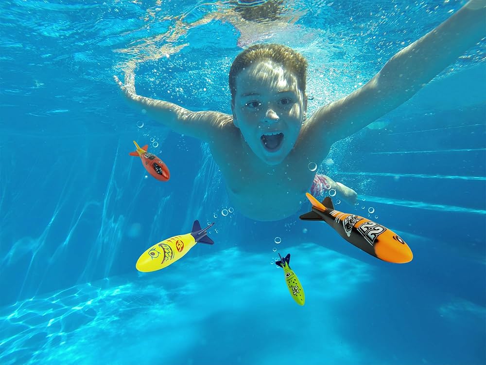 The Rotten Egg Diving Pool Game for kids includes 6 plastic eggs weighted for submergibility for diving action. Weighted just right, the water diving eggs sink quickly and are ready for underwater games and play. Create your own rules for pool play. Simply toss in the water and wait for them to submerge...then go! Or for a more advanced level of play, toss the eggs in the pool and see if you can catch them before they reach the pool bottom. Each egg comes apart to reveal a number for scoring... or the 'rotten egg'. Don't get the rotten egg! Use your imagination for a fun water game and to help kids develop diving skills.