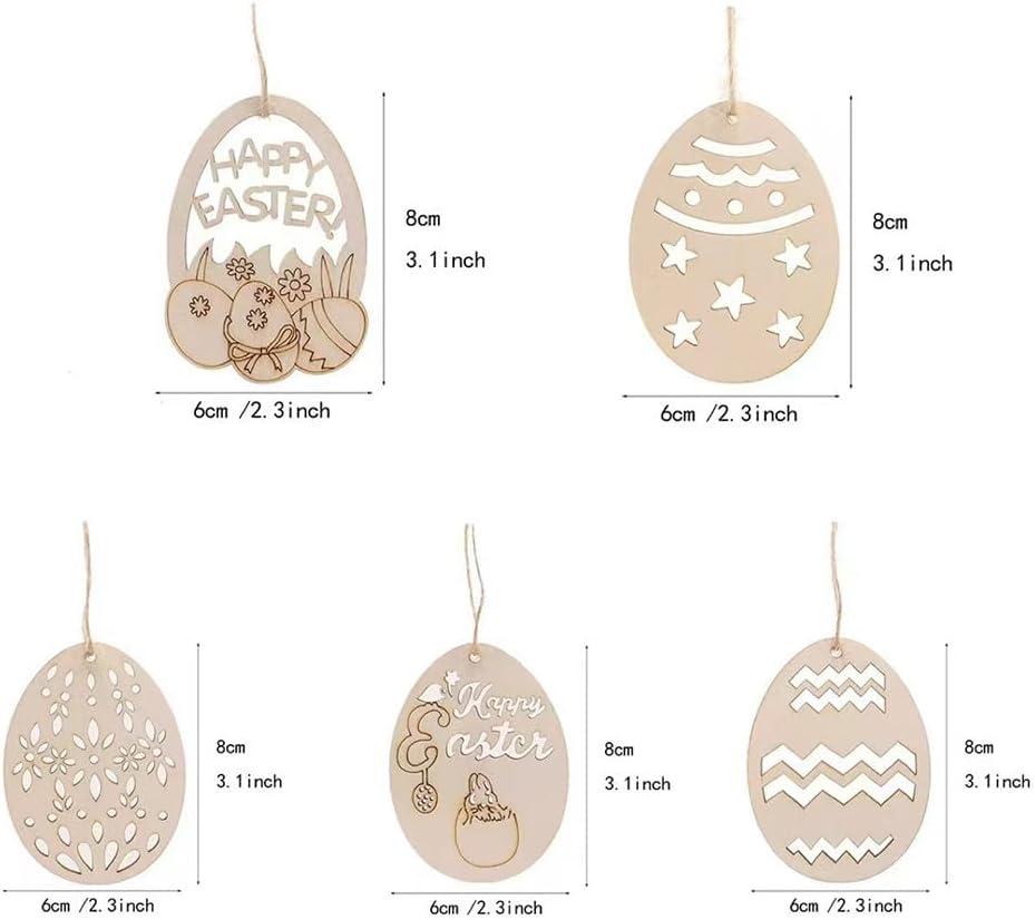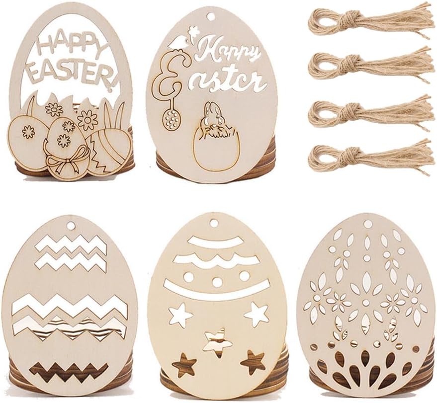 Zsail Easter Egg Wooden Cutout 40pcs Unfinished Wooden Easter Egg Hanging Ornaments for Easter Party Kids Paint Home Party Decoration Craft Project