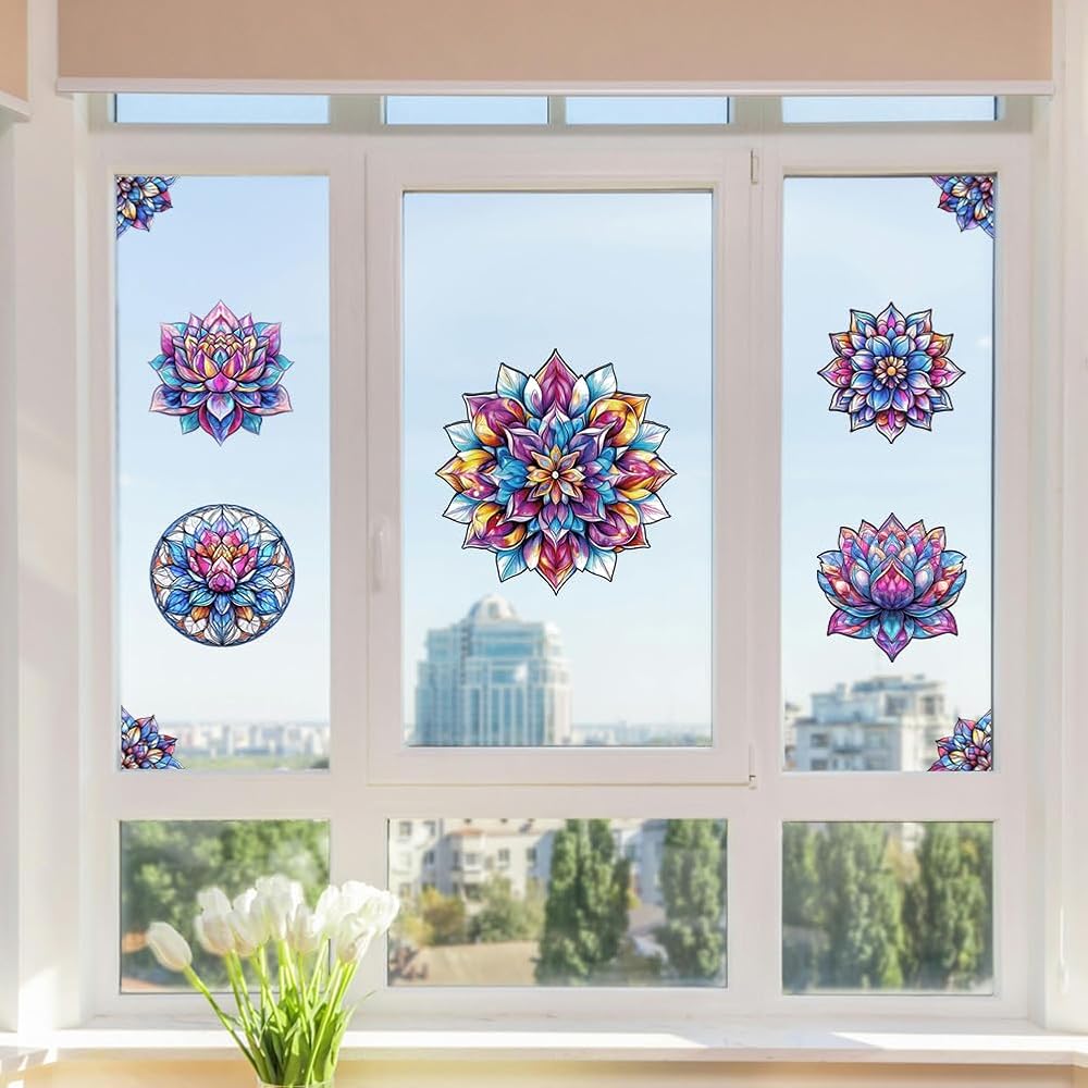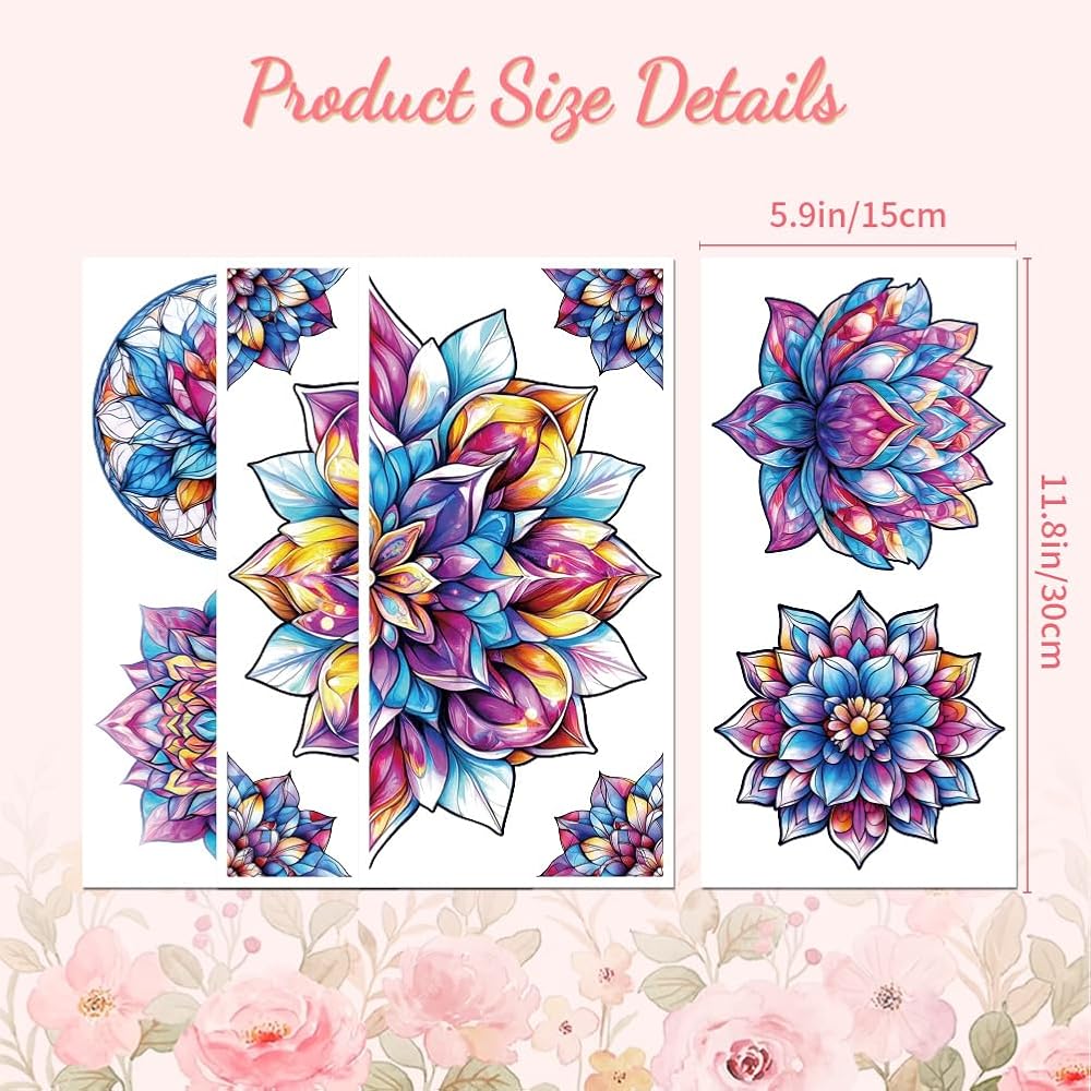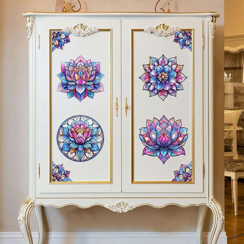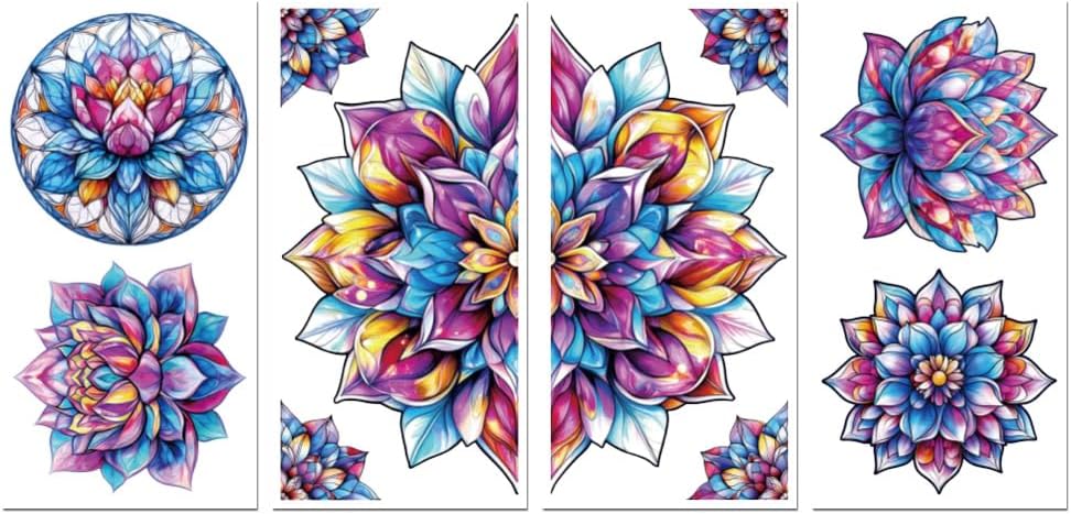 Peacoblue Rub on Transfer Decal Sticker for Furniture Craft Decor 6"x12" Colorful Mandala Lotus with Scraper, 4Pcs Waterproof UV DTF Transfer for Drawer Dresser Glass Porcelain Wood Plastic Window