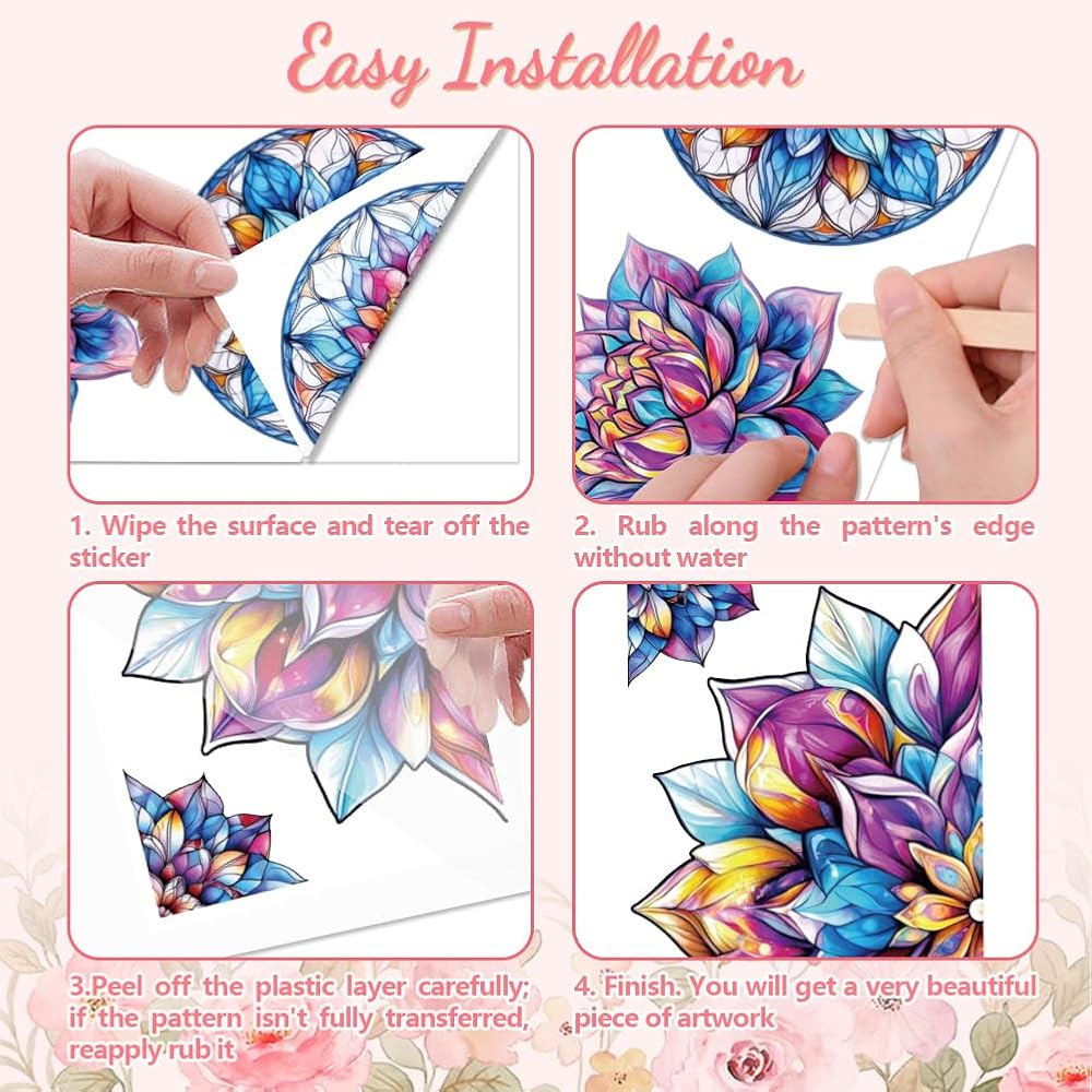 🌳Easy to Use: Wipe the surface and tear off the sticker, then rub along the pattern's edge after you stick them. Peel off the plastic layer carefully at last, but it is important that you don't get water when installing it