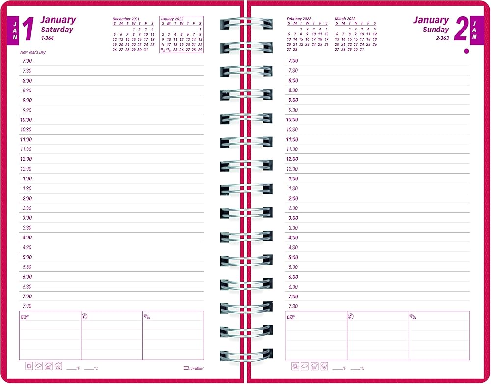 The Brownline® DuraFlex Daily/Monthly Planner and Appointment Book features 12 months of planning, spanning January 2025 to December 2025, with one day-per-page in an appointment schedule format. The two-piece, textured poly cover is constructed with flexible twin-wire binding for a flat and sturdy writing surface. Schedule appointments in half-hour intervals from 7:00 a.m. to 7:30 p.m. across the full week with three reminder blocks for notes and calls and daily specific area to record the weather on each page. Monthly planner before each month with the week starting on Sunday ending on Saturday. Contains reference calendars of past, current and following two (2) months on each spread, countdown of days passed and days to come (Julian dates), and highlights holidays and phases of the moon. Tear-off corners to help keep place and faux printed monthly tabs for quick access on page edges. Extra bonus pages include: three-year calendar, list of important dates, 2025 and 2026 quarterly planners, interest table, metric conversion charts, maps and dedicated sections for cash records, contacts (telephone/address/email) and notes. English. Raspberry cover with white date detail, size: 8" x 5". Eco-conscious planner crafted from 50% post-consumer recycled fiber paper materials. Certified under FSC® license code: FSC® C102682. The Forest Stewardship Council® enables businesses and consumers to choose products made with materials sourced from responsible forestry, promoting environmentally appropriate, socially beneficial, and economically viable management of the world's forests. Made in Canada. The Brownline® DuraFlex Planner is available with a heavy-duty, yet flexible, poly cover. The two-piece cover folds back to lay flat and provides a sturdy writing surface. DuraFlex provides a great management tool, professionally crafted for a durability that fits the needs of the most budget-conscious user in a variety of formats. Brownline® Dated Products are produced using acid-free paper to prevent color-change over time and vegetable oil-based inks to help protect the environment. Brownline® Since 1846. (CB634V.RAS)