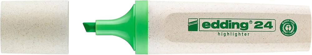 Refillable Highlighter with Water-based Ink for marking and highlighting text on almost all types of paper. High colour brilliance. Barrel and cap made from at least 70% renewable resource. Refillable with Edding HTK.