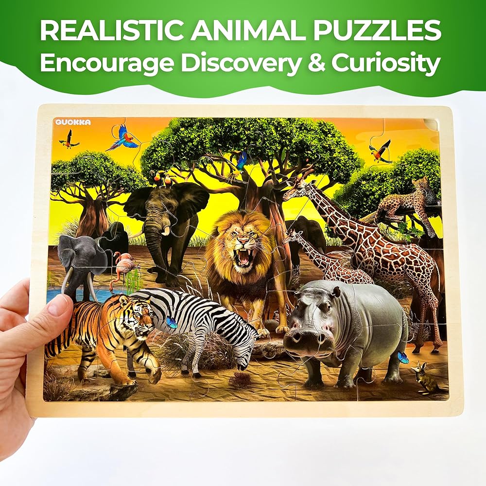 24 PIECE PUZZLES WITH ANIMALS: These childrens puzzles are made of wood and contain large pieces with unique shapes; With a captivating animal theme featuring a wide variety of creatures, these easy puzzles offer hours of fun for kids