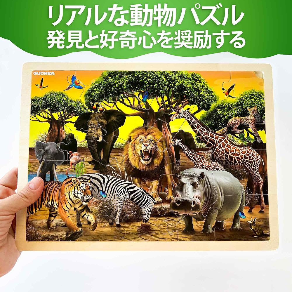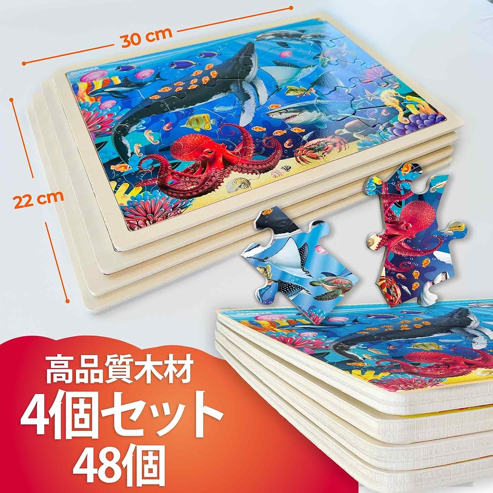 QUOKKA 4SET Puzzles for Kids Ages 4-6 - 48 Pcs Wooden Toddler Realistic Montessori Puzzles Ages 3-5 - Wild Animals Africa Ocean Farm Learning Games for Boys and Girls 4-8 Year Olds