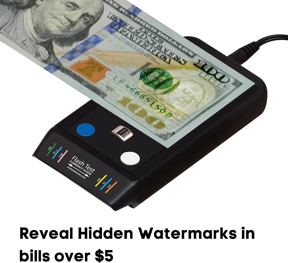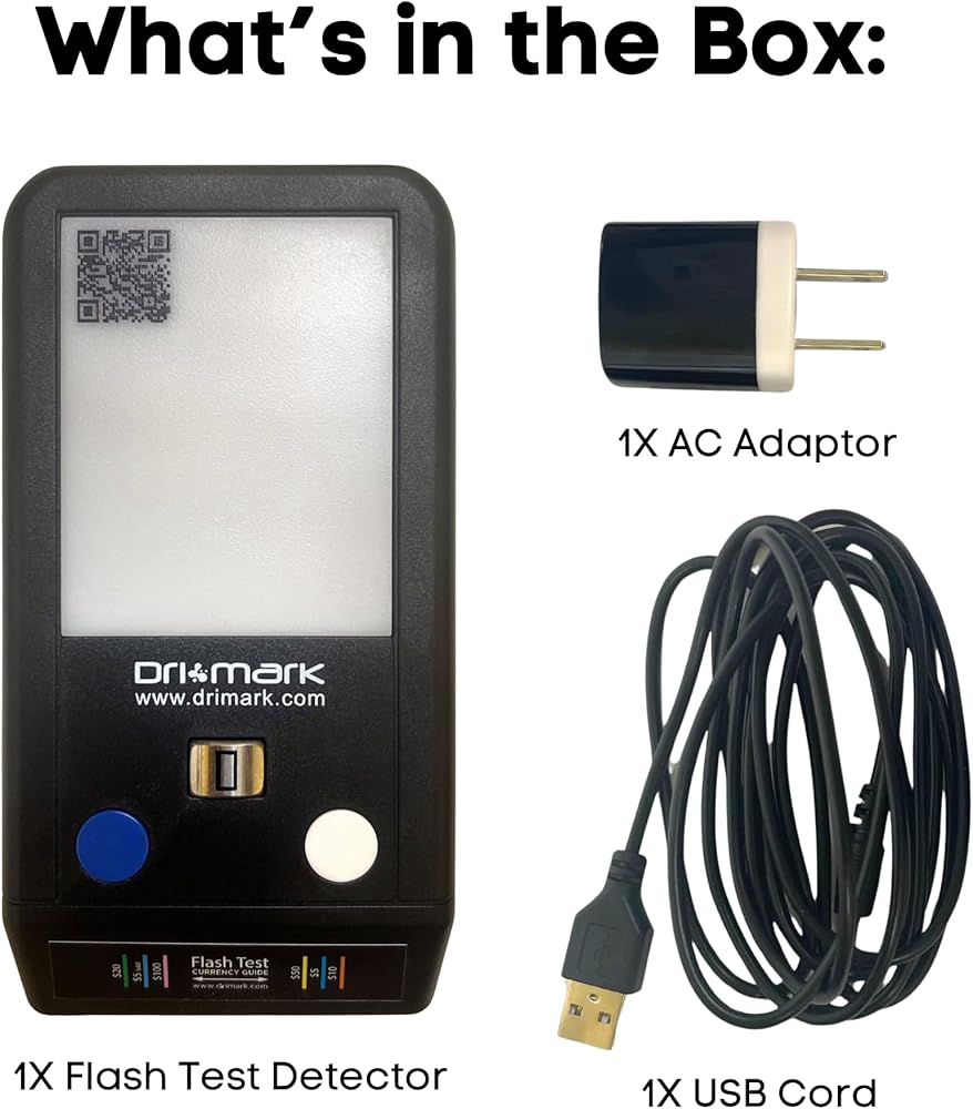 Dri Mark Flash Test Counterfeit Bill Detector, 3 Easy Tests in One Small Device, Watermark, Ink, Security Strip, Fast and Accurate Money Checker, Fake Currency Detection Machine, Maintenance Free