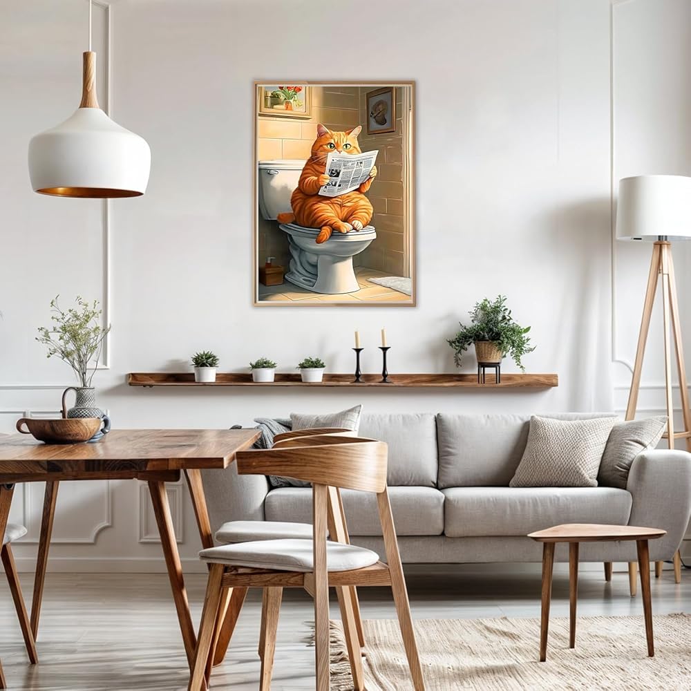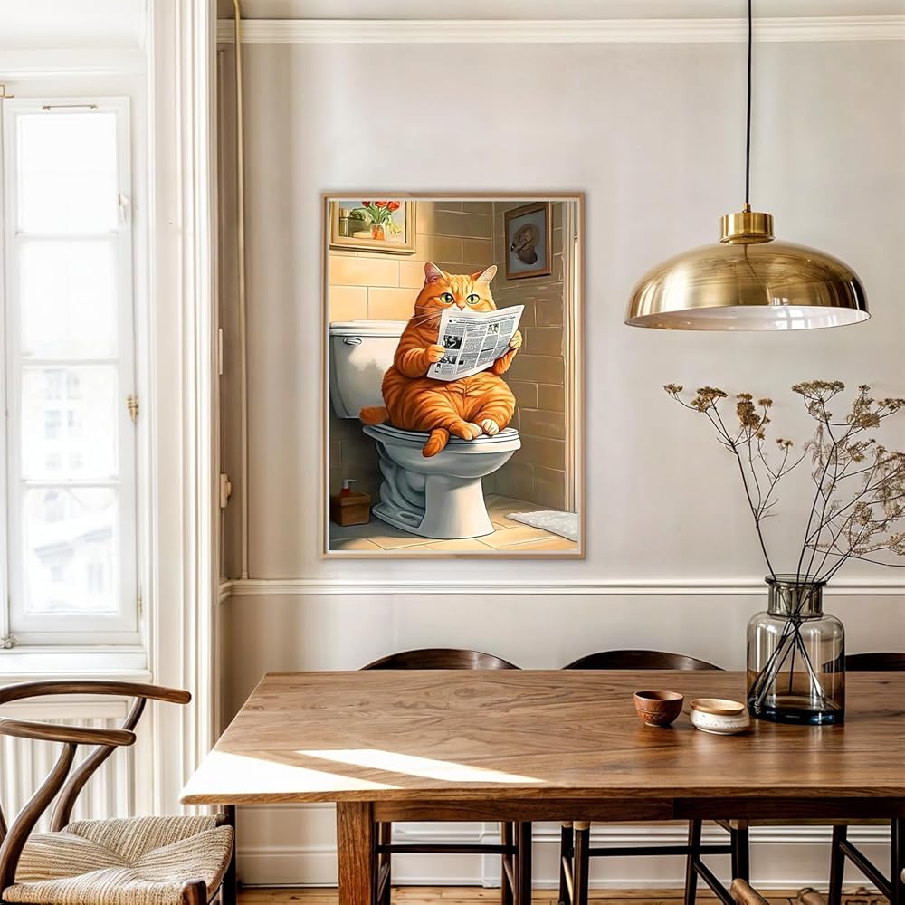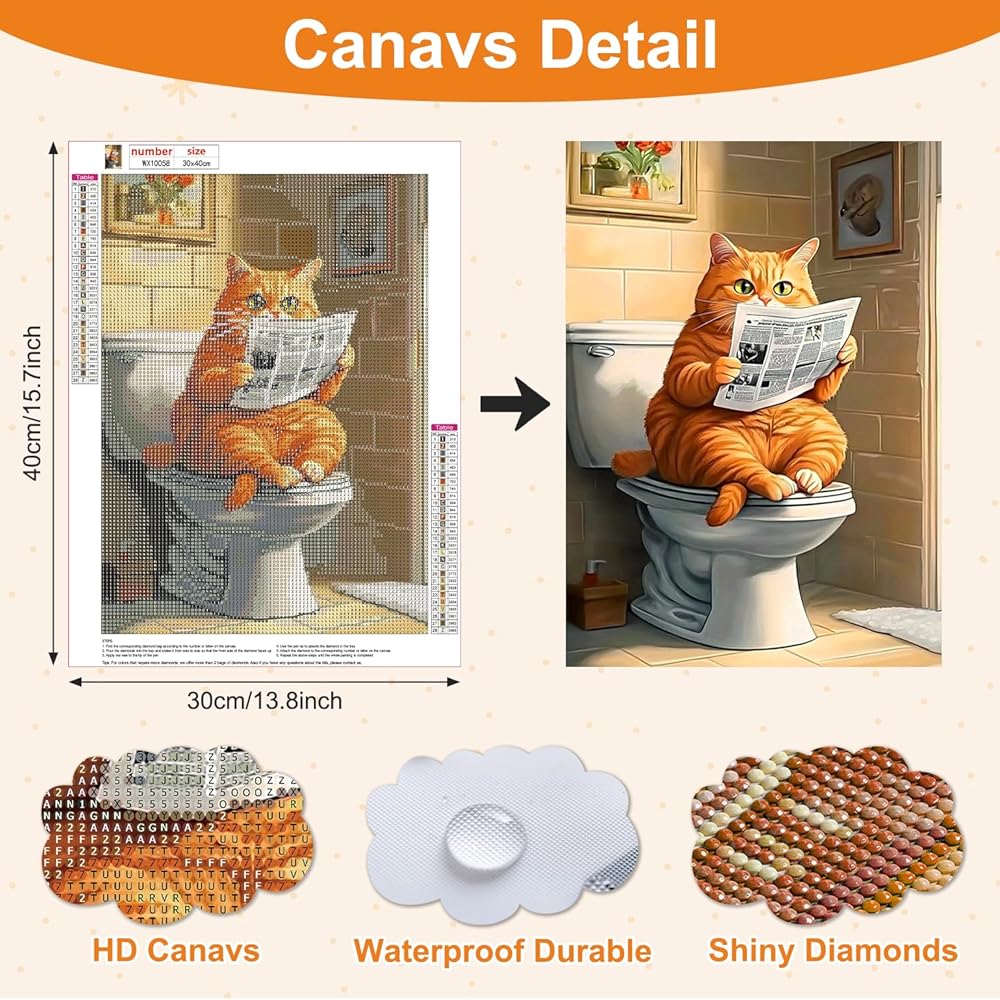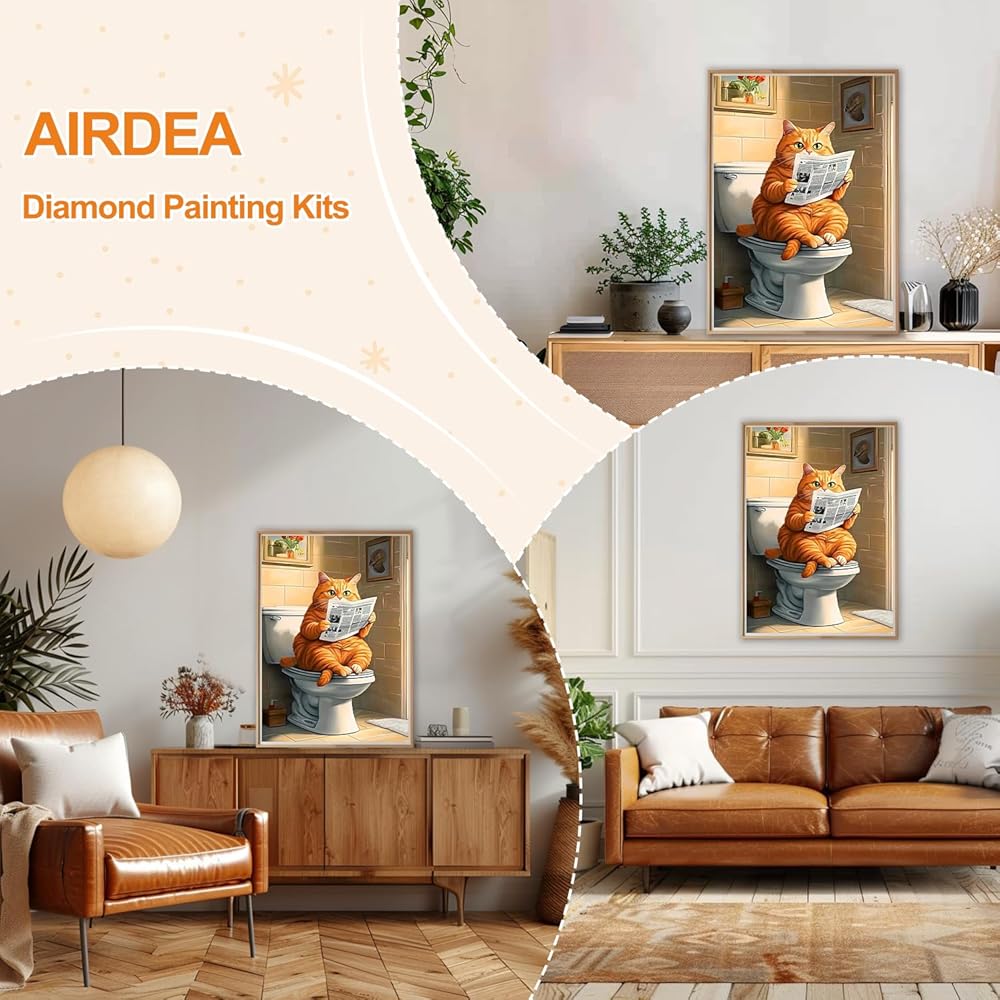 AIRDEA Diamond Art Paintings Kits for Adults,Cat Diamond Dots for Beginner,12x16 Inch DIY Gem Art Set,Cat Reading Newspaper,Home Wall Decor