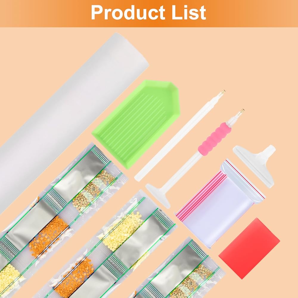 • diamond art Kits:Round diamonds full drill of the whole picture, each diamond is colorful and sparkling. If you have enough time and patience to complete this challenge, you will get a sense of accomplishment.Each diamond art toolkit contains a set of tools for making drawings, so there is no need to purchase any other toolkits.