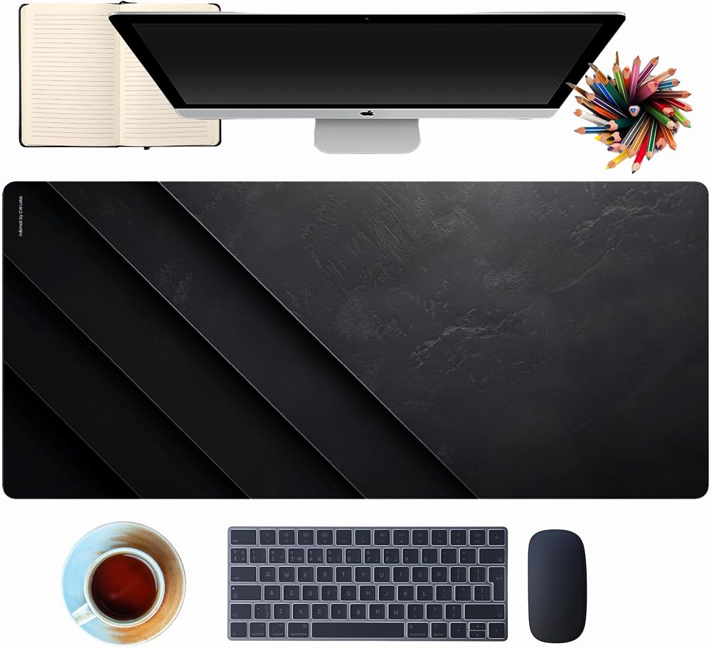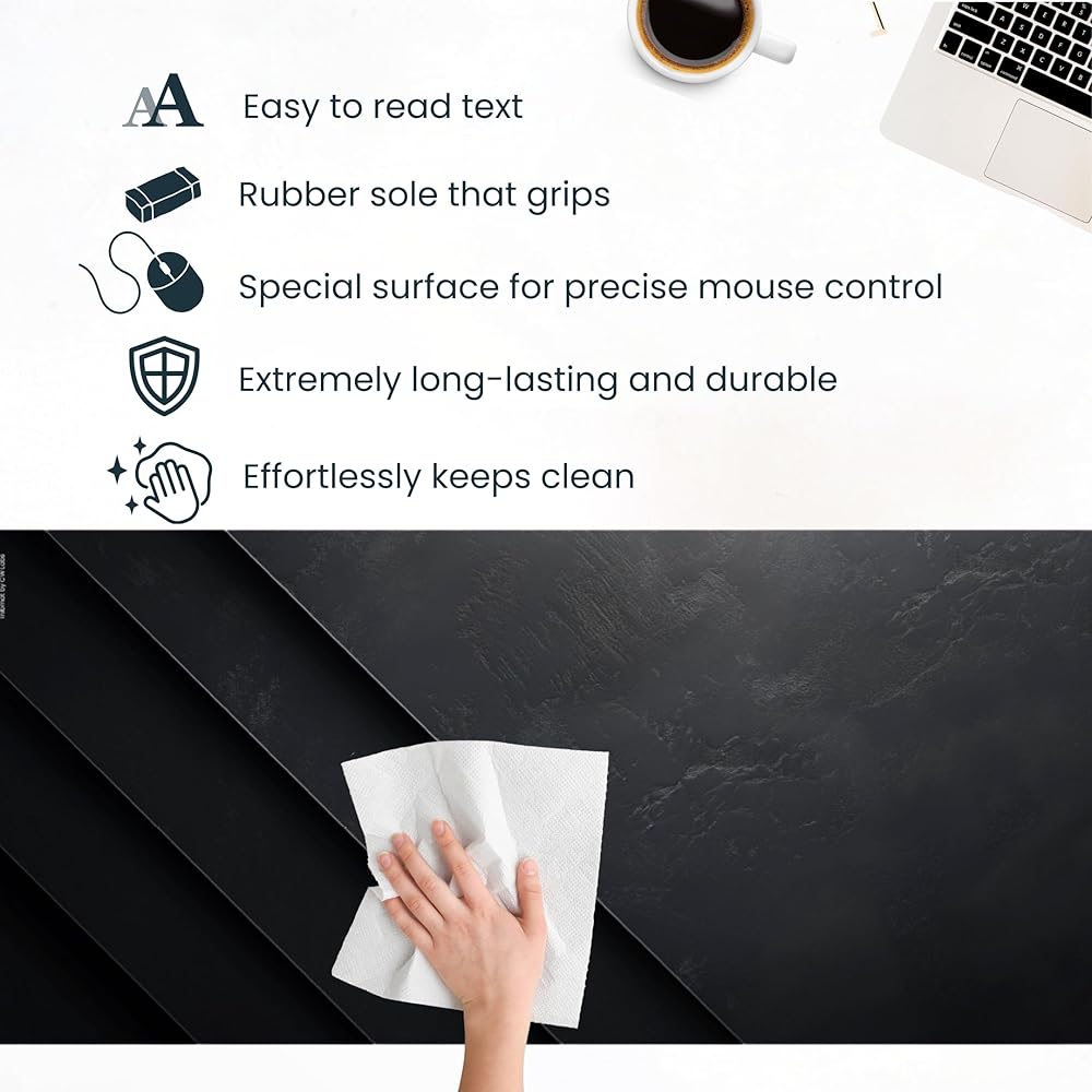Black Stone Mouse Pad – Extra Large Desk Mat for Keyboard and Mouse | Minimalist Gaming Mouse Pad, Laptop Desk Mat, Non-Slip Rubber Base, Modern Workspace Accessory