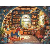 Step into a crafter's paradise with this charming 1,000-piece jigsaw puzzle for adults. Featuring a vibrant workspace filled with colorful fabrics, art supplies, and a loyal corgi companion, the scene captures creativity and comfort. A picturesque lakeside view through the window adds a touch of serenity. Perfect for crafters and puzzle enthusiasts, this delightful design promises hours of relaxing fun!