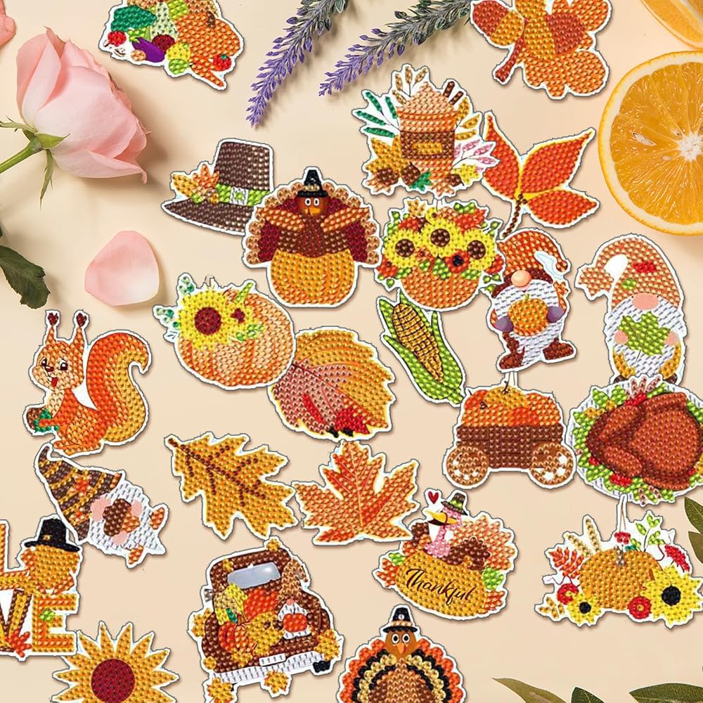 COMPLETE SET: Contains 24 pieces of diamond painting refrigerator magnets, a sufficient amount of diamond dot packs, 1 diamond art pen, 1 tray, 1 piece of jelly glue. Full set of accessories all in one, no need to buy extra tools, start your diamond art creation journey anytime and anywhere, create exclusive personalized decorations