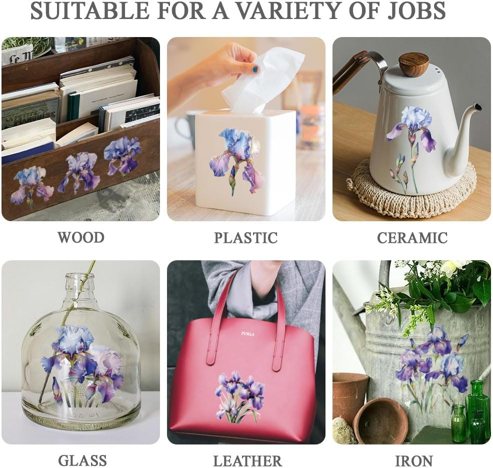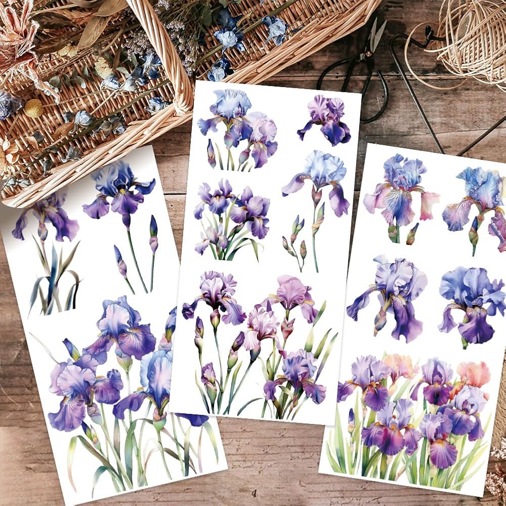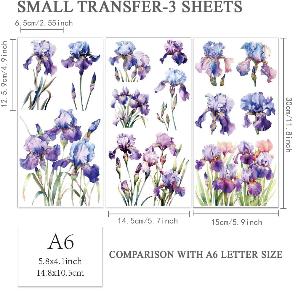 OLYCRAFT 3pcs/Set Iris Rub on Transfers for Furniture and Crafts 6x12 inch Flower Decor Transfer Stickers Floral Rub on Decals for Wood Furniture Scrapbooking Home Decorations