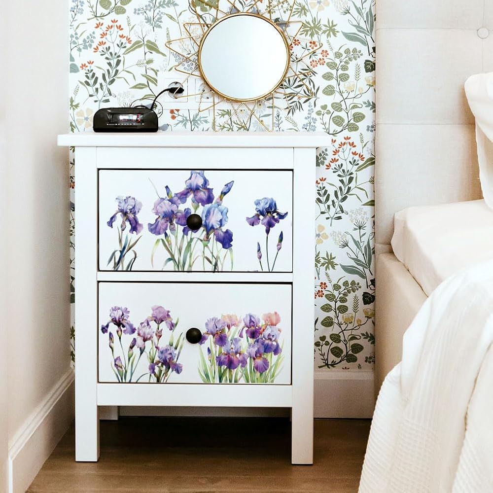 Flower Theme--These furniture stickers are designed with iris pattern. Fine printing technology makes every pattern delicate and beautiful. Add a touch of elegant and intricate beauty to your furniture. Please note that the product may not peel well, during use it is recommended to use a squeegee to flatten and compress it, then gently peel it.