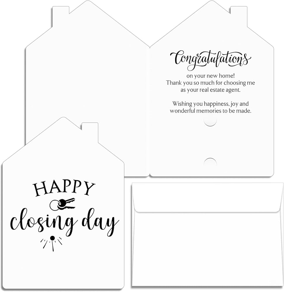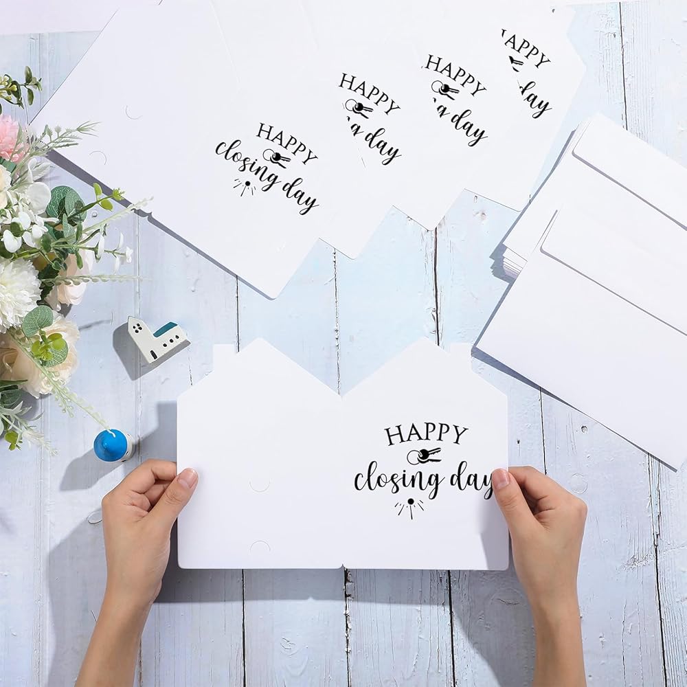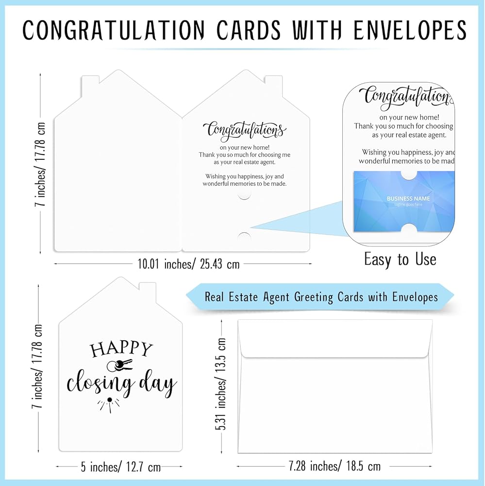 Distinctive Quality Material: crafted from reliable paper, these estate agents new home cards exude sophisticated charm while ensuring durability; They measure about 5 x 7 inches/ 12.7 x 17.78 cm when folded and 10 x 7 inches/ 25.4 x 17.78 cm when unfolded, offering ample space for your heartfelt messages