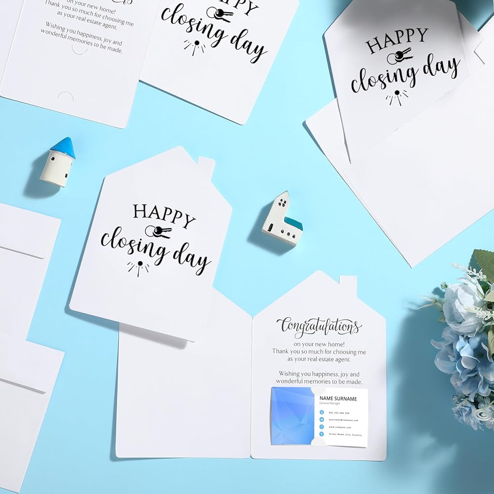 Real Estate Agents' Essential Tool: these cards are much more than just greeting cards; They're an essential tool for real estate agents; They are a thoughtful way to remain memorable to potential and past clients while showing gratitude and congratulations on their new homes, which in turn, helps to build rapport