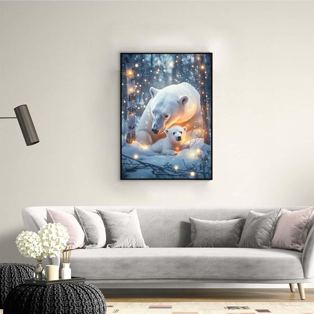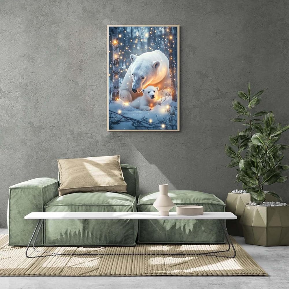 Ginfonr DIY 5D Diamond Art Kits for Adults, Bear Diamond Painting for Adults, Diamond Art Winter Full Drill, Diamond Art Kits Embroidery Rhinestone Craft for Home Wall Decor 12 * 16 Inch8185