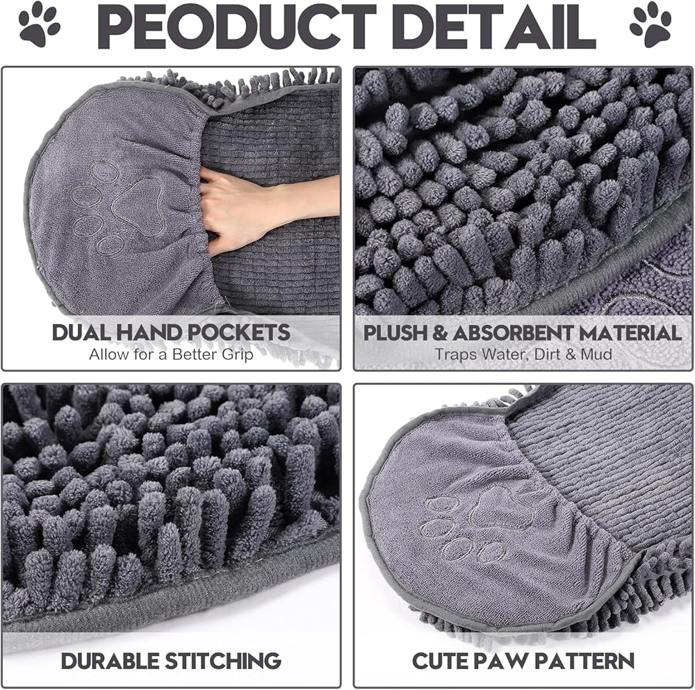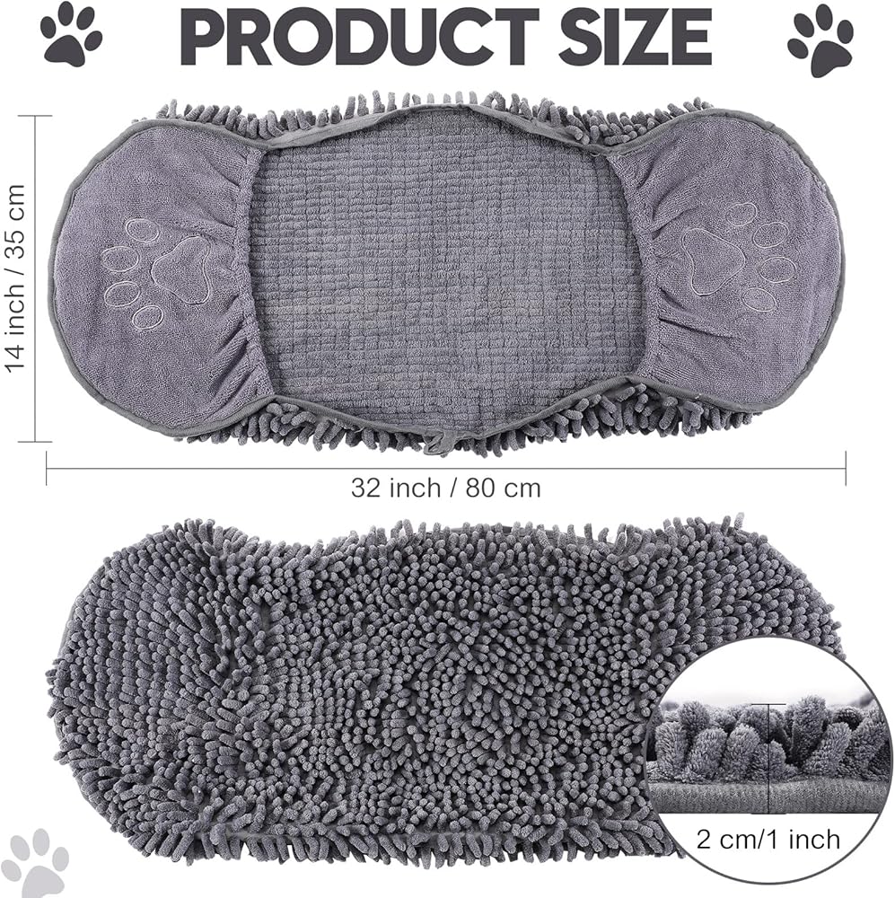 This dog bathing towel is absorbent and can dry very quickly after washing, giving you a nice experience. It is lightweight and foldable, so you can easily carry it around for use.
