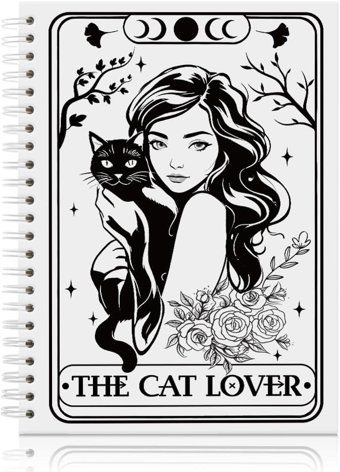 The Cat Lover Retro Spiral Notebook, Black Cat Tarot Style Notebook is Suitable for Cat Lovers, Xmas Birthday Gifts for Cat Women Colleagues Sisters, Cat Gifts for Fortune Tellers