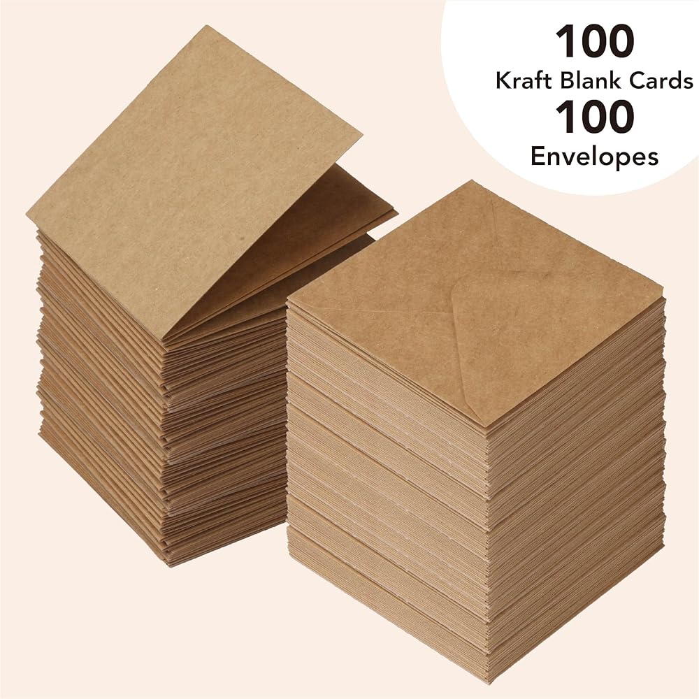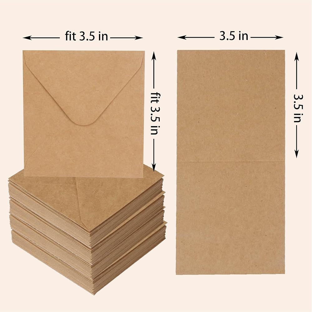 Kraft mini envelopes - Includes 100 single kraft note cards and 100 coordinating envelopes