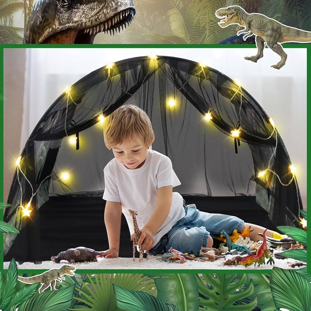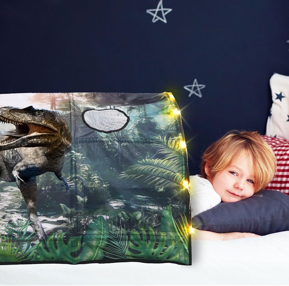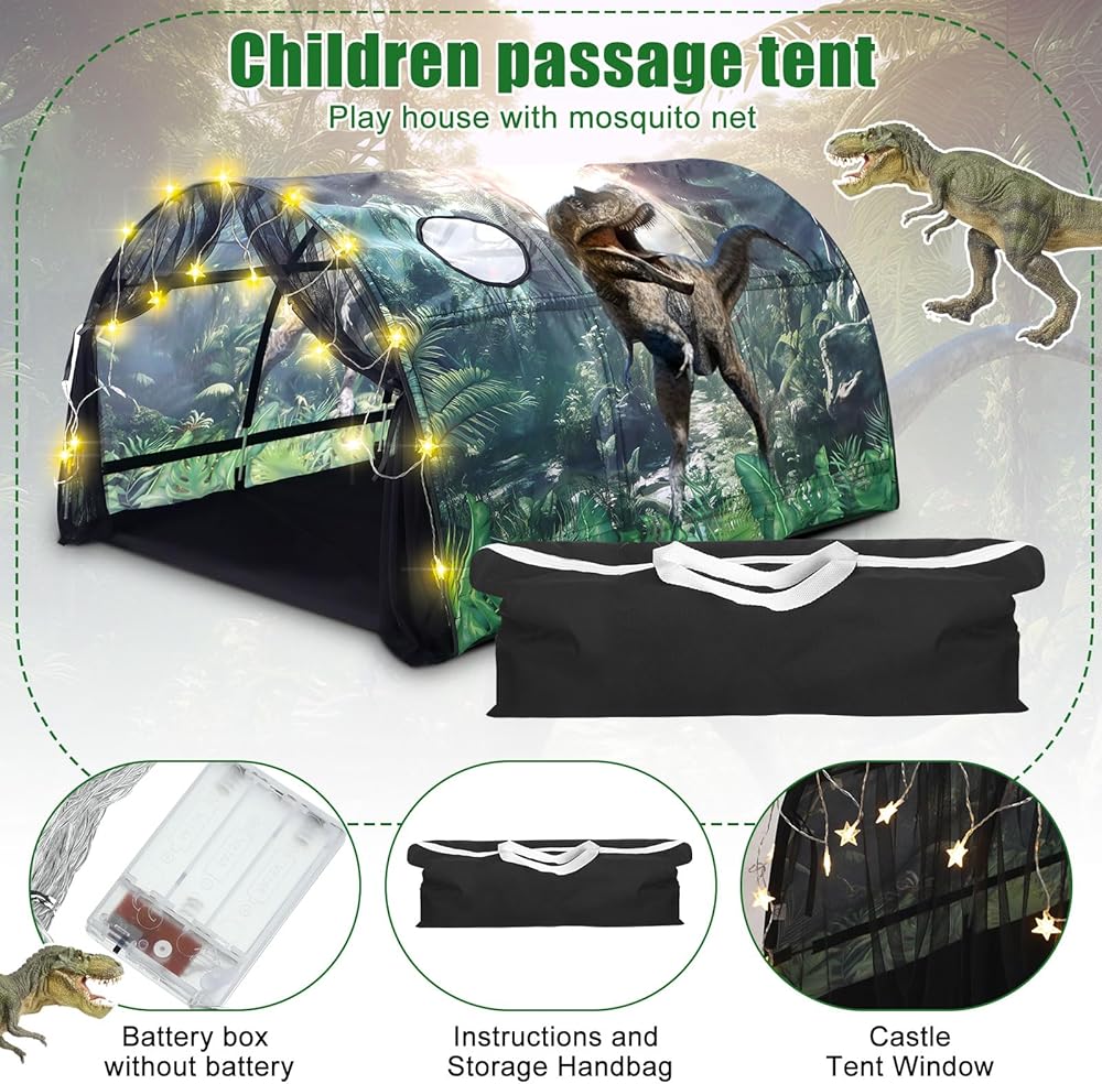 Imagination and Adventure Place: boasting an impressive size of approximately 39.37 x 55.12 x 31.5 inches, this dinosaur bed tent provides an ideal secluded space for children to play and immerse themselves in a colorful, magical world