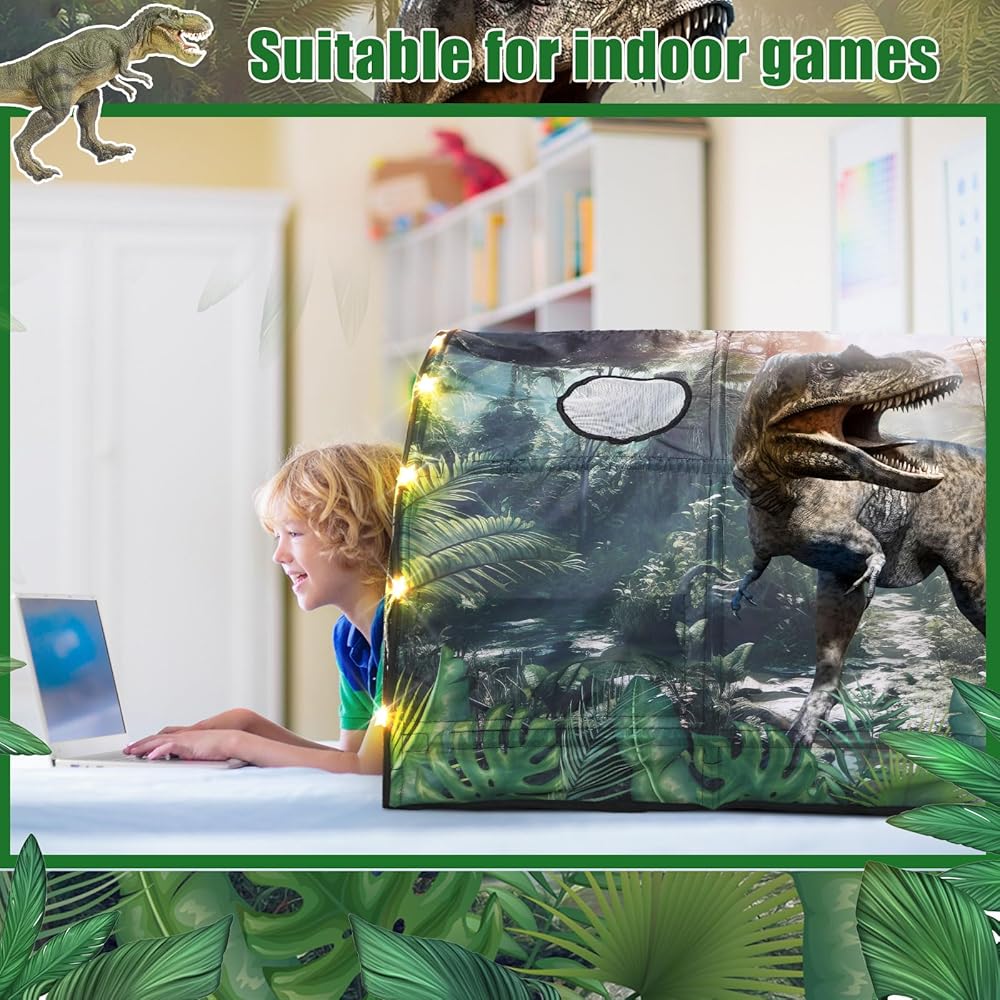 Endless Possibility: the dinosaur playhouse tent is ideal for all kinds of gatherings and events; From dinosaur theme parties and birthday parties to indoor play for conditions of weather; This tent also serves beautifully for outdoor activities such as camping; With its versatility, children can enjoy the magic of the tent in various scenarios and settings
