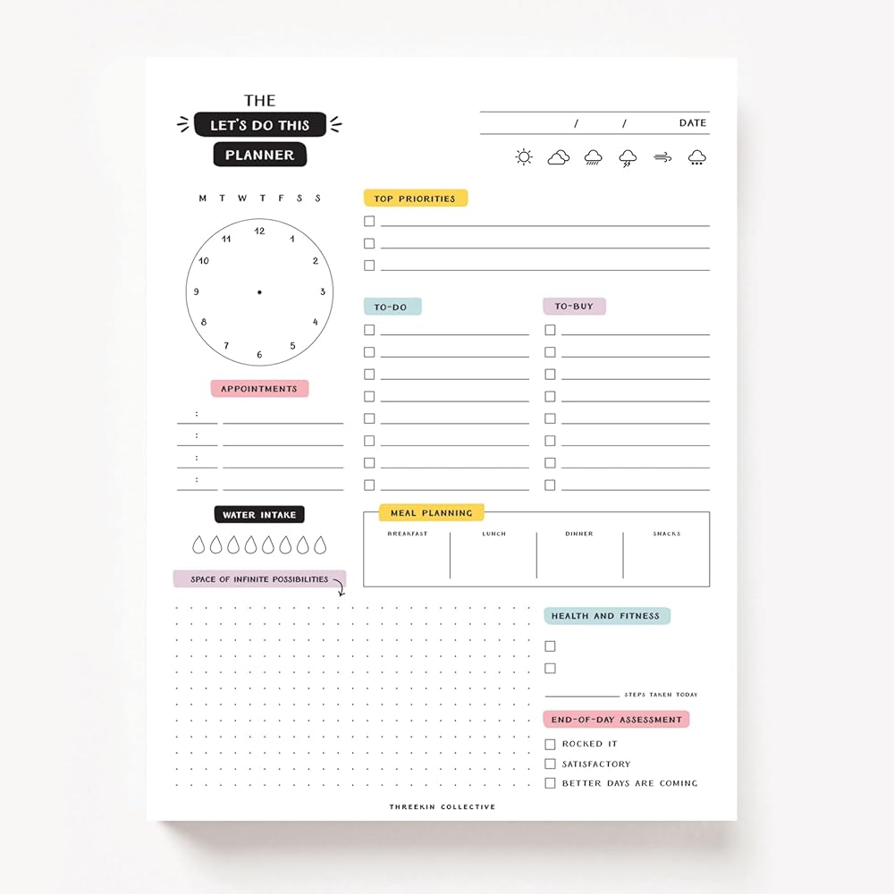 User-Friendly Layout: Spacious 8.5 x 11 format, offering ample space for writing down tasks, meal prep ideas, fitness routines, and daily priorities.