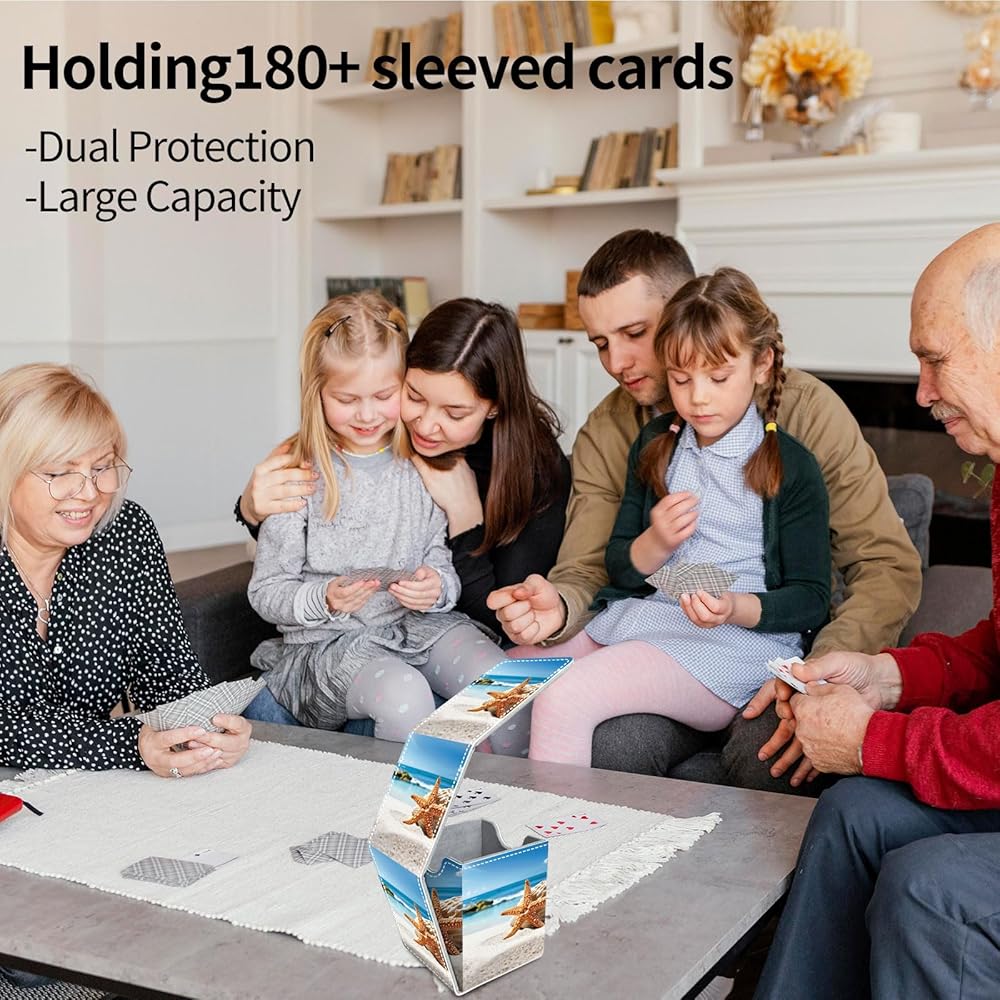 Card deck box equipped with sturdy magnetic snap closure,which will keep the lid firmly closed even when it is upside down, ensuring your cards wont be damaged or drop out , no need to worry about losing your precious cards. The box adopts a double-sided wide mouth U-shaped design, Even if the box is filled with cards, you can easily remove them all at once, The just right design allows you to easily place and retrieve cards without obstruction, saving valuable space on the gaming table.