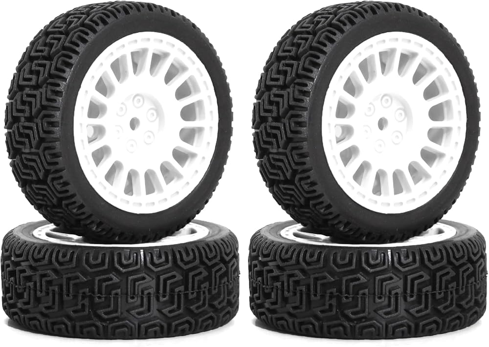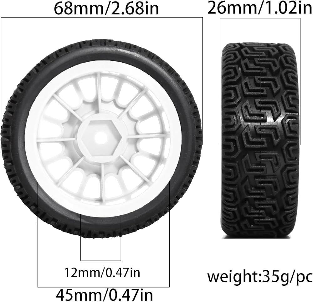 1/10 On-Road Racing Tires,68mm OD RC Rubber Wheels Tires Set 12mm Hex Fit for Traxxas HSP Tamiya TT01 TT02 HPI Kyosho HSP 1/10 On-Road Touring Car (White 2)
