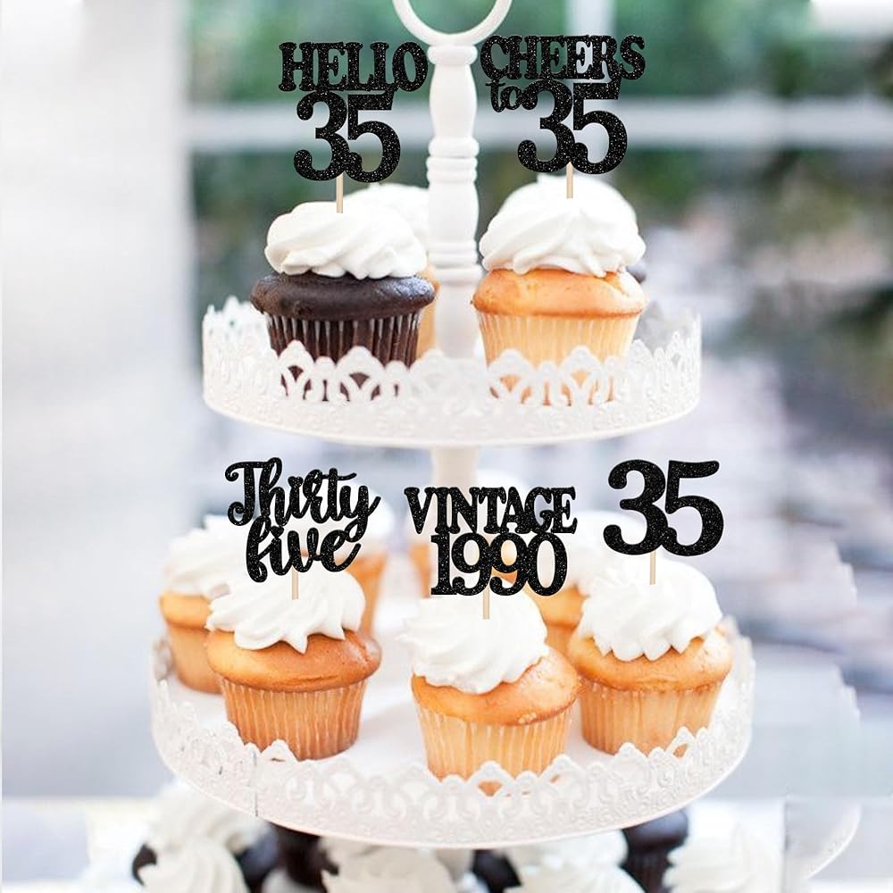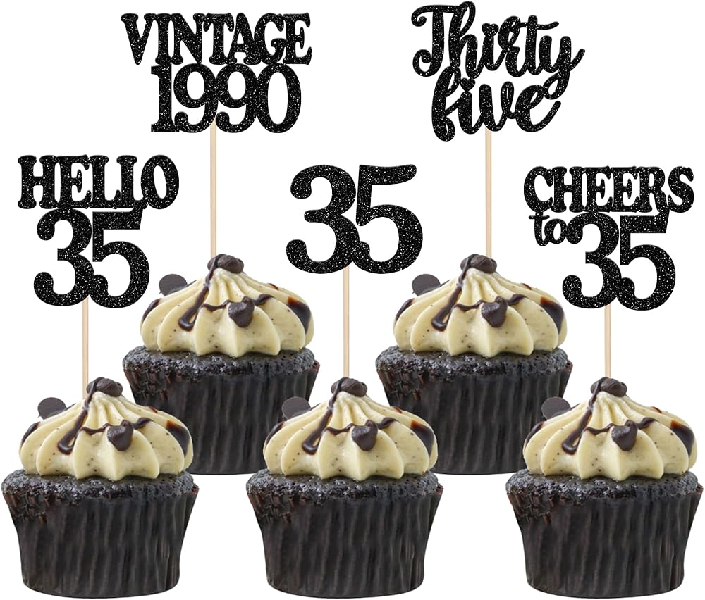 30PCS Happy 50th Birthday Cupcake Toppers Glitter Hello 50 Fifty Vintage 1975 Cupcake Picks Cheers to 50 Birthday Party Cupcake Decorations for 50th Birthday Anniversary Party Cake Decorations Supplies Black
