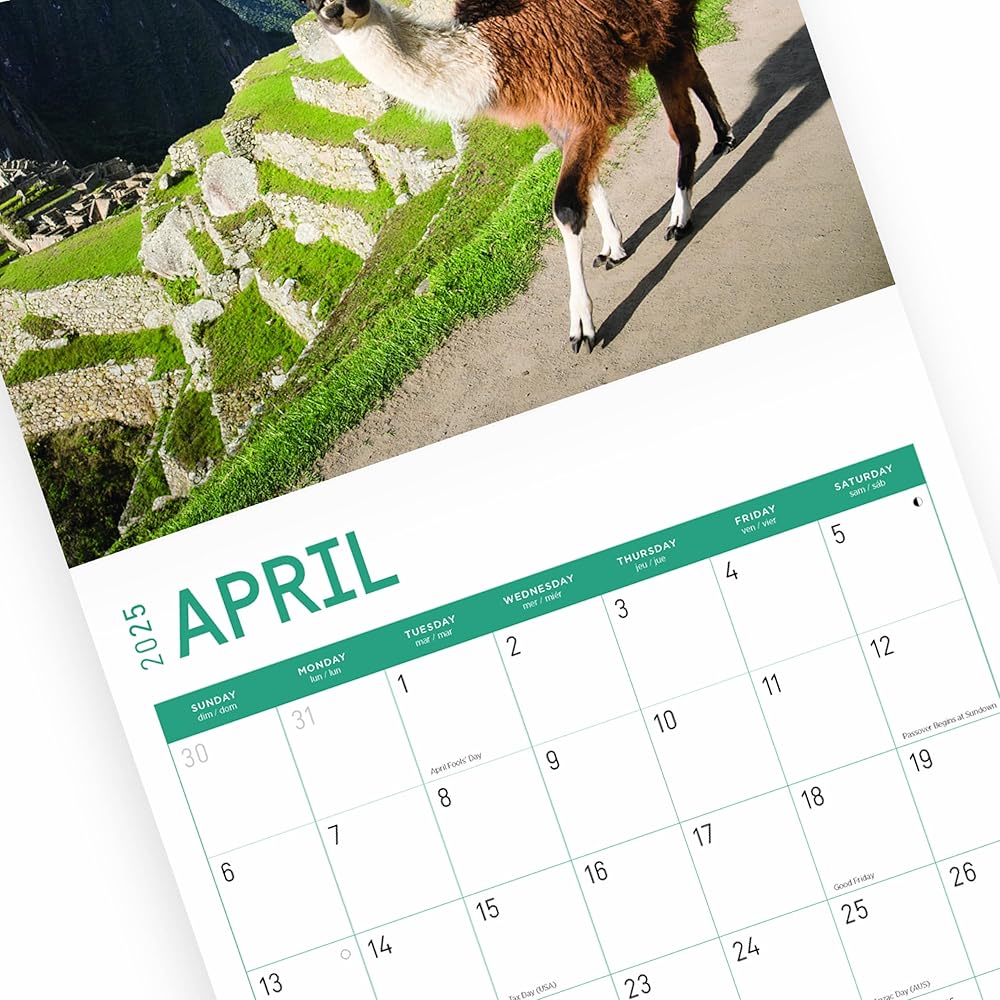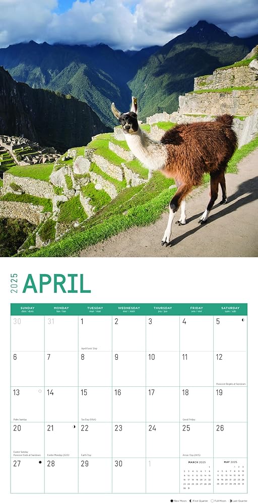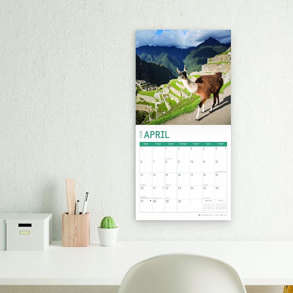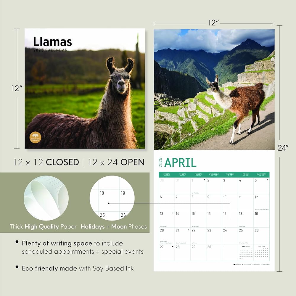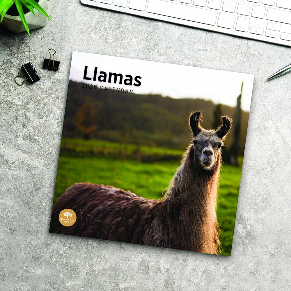 2025 12 Month Calendar - Llamas originate from South America and have been domesticated to be used as pack animals. As part of the camelid family, llamas share a common ancestor to camels, making them cousins! They are extremely smart and easy to train, and they rarely get upset. However, if they become agitated they are known to spit at their opponents, so watch out!