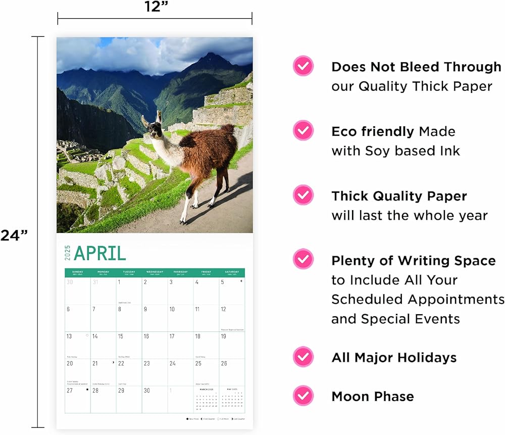 High Quality : Wall Calendar Size Closed: 12 x 12 Inch. Opened: 12 x 24 Inch. Does not bleed through! 13 Full Color Images in our 2025 12 x 12 Wall Calendar. No compromises are made on image quality or content.
