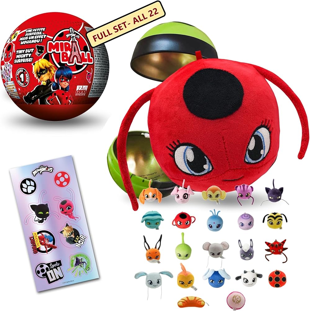 Each Miraball contains a 2.8-inch metal ball features one of your 20 favorite Miraculous characters (Ladybug, Cat Noir, Ryûko, Rooster Bold, Polymouse, Carapace, Rena Rouge, Vesperia, Viperion, Purple Tigress, Cat Blanc, Hawk Moth, Bunnyx, Pigella, Mayura, Miss Hound, King Monkey, Pegasus, Caprikid and Minotaurox) or according to Tom and Sabine's famous bakery).